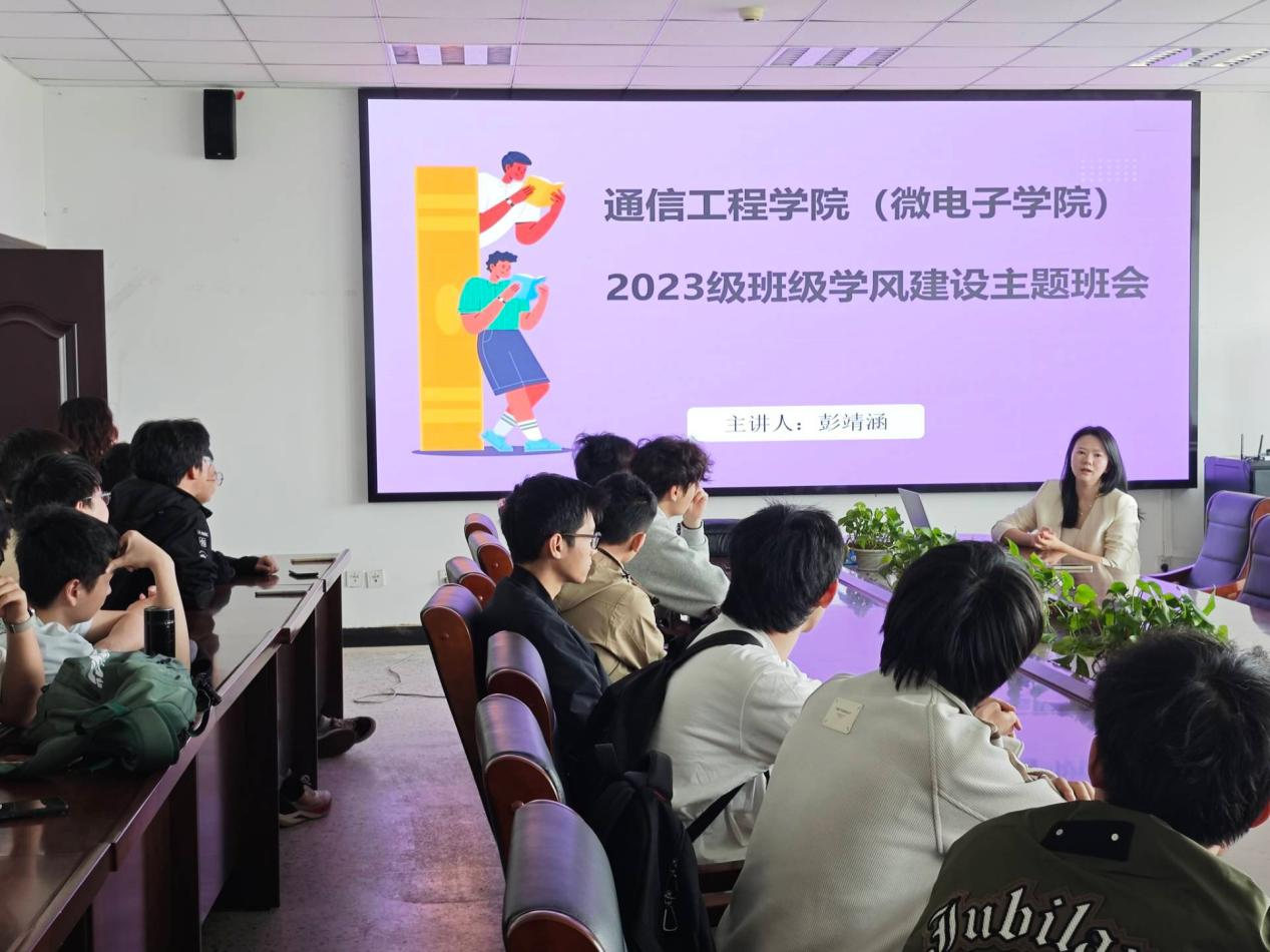 为进一步营造积极向上的学习氛围,推动我院学风建设再上新台阶,辅导员彭靖涵于4月9日10日两天针对2023级部分班级全体学生召开学风推动会。辅导员彭靖涵强调良好的学风不仅是学生学习成效的保障,更是青年学子风貌的体现,其内涵包括积极向上的学习态度、严谨认真的学术作风以及团结协作的学习氛围。会上同学们就如何提升学习效率、培养良好学习习惯等方面进行了讨论性发言。