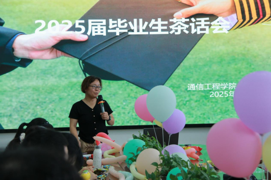 茶话会由2025届毕业生何苗主持。她回顾了同学们在校期间的成长历程,并代表全体毕业生向学院和老师表达了诚挚的感谢。