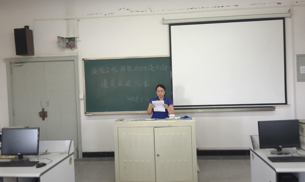 2015年5月8日下午两点半,betway必威西汉姆联研究生党支部党员发展大会在6507举行,本次大会旨在吸纳优秀学生壮大党员队伍,为支部将来的发展打下坚实的基础。大会由党支部书记青刚主持,分别进行了预备党员转正和预备党员发展。