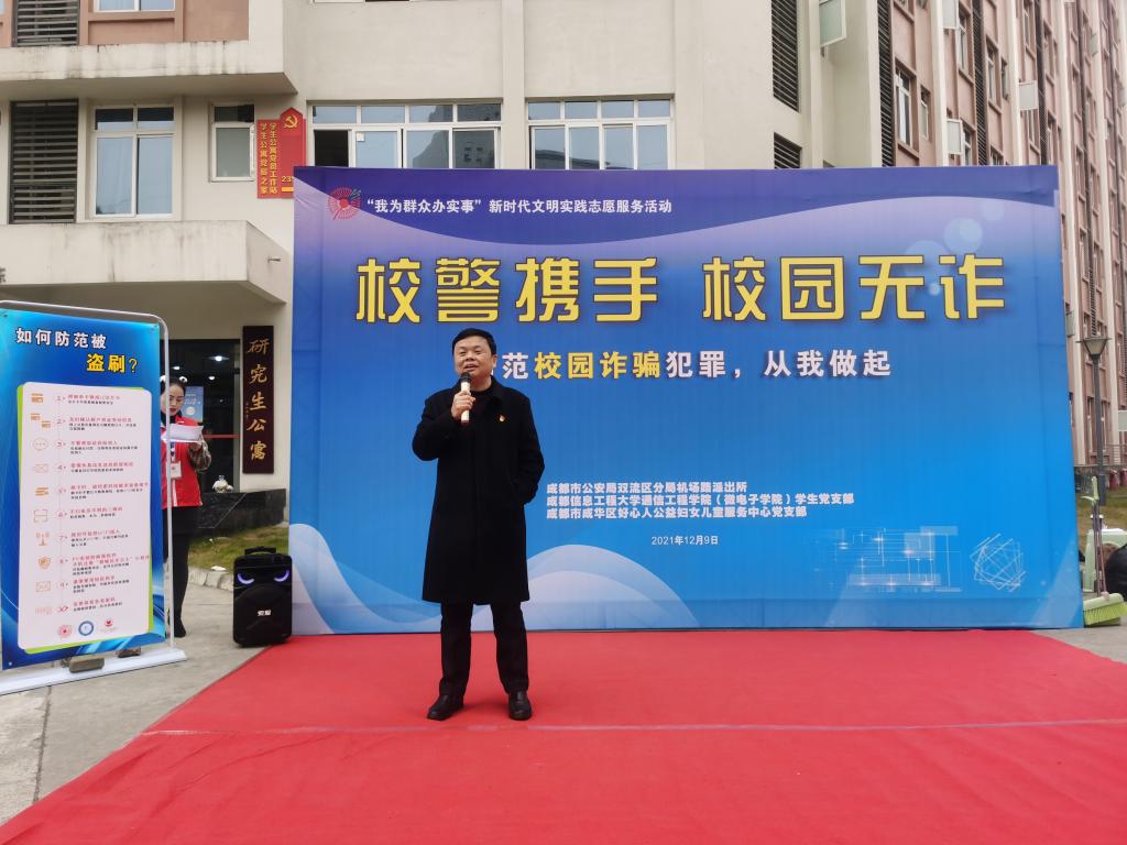 为提高我校学生对诈骗集团、诈骗手段和诈骗方法的认知,树立自我保护意识、防范意识,培养应对诈骗手段的能力,betway必威西汉姆联(微电子学院)学生党支部邀请成都市公安局双流区分局机场路派出所、成都好心人公益团队党支部,于12月9日共同开展了“我是党员我带头,反诈宣传当先锋”防诈骗宣传活动。