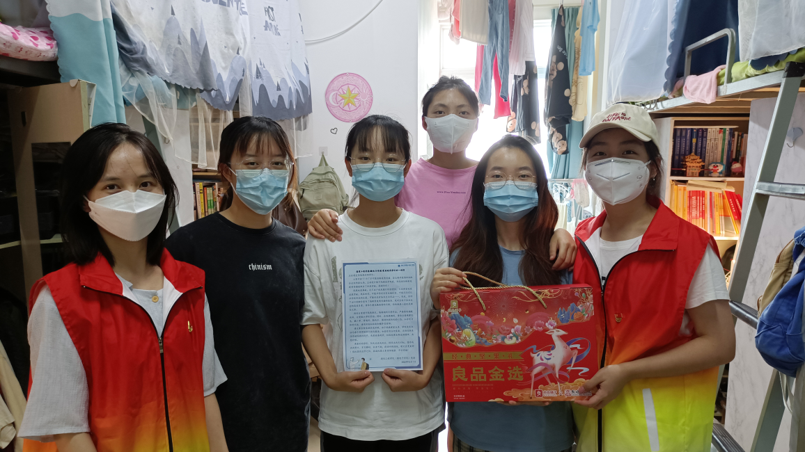 10月2日,第一学生党支部书记邵璐老师将事先准备好慰问物品转交给许冬玲、杨斌华等党员同志,慰问物品包括良品铺子的零食礼包和一封学院的慰问信。各党员同志将其配送到学院各年级隔离寝室中,向被隔离同学表达关心,转达学院与老师对被隔离同学们的深切关怀与问候,被隔离同学对学院与老师们的精心照顾深表感谢,纷纷表示积极配合学校的相关安排,确保健康平稳的渡过隔离期。