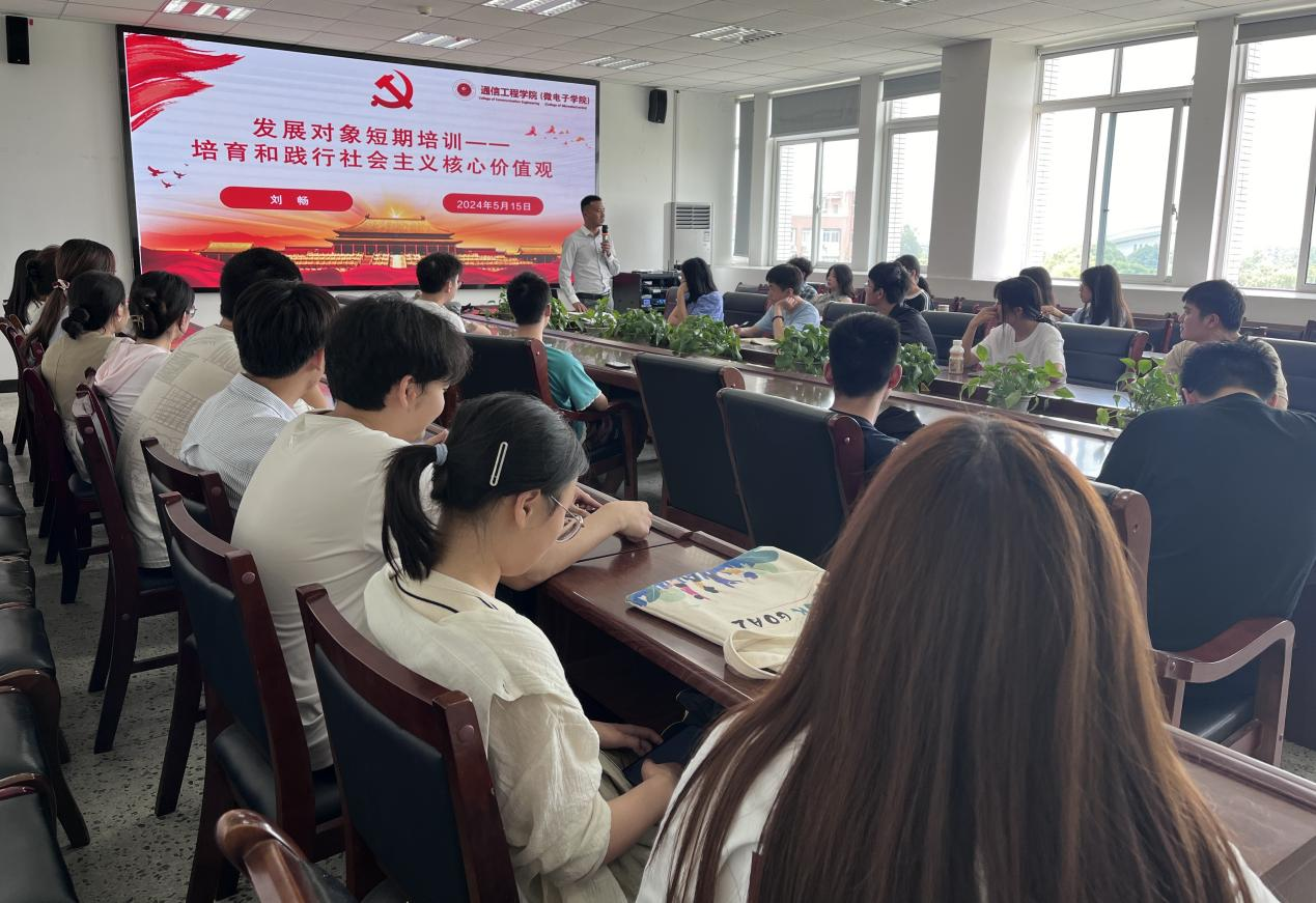 刘畅从入党动机和社会主义核心价值观两方面展开讲述:引导同学进一步端正入党动机,树立正确的人生观和价值观,坚定理想信念。