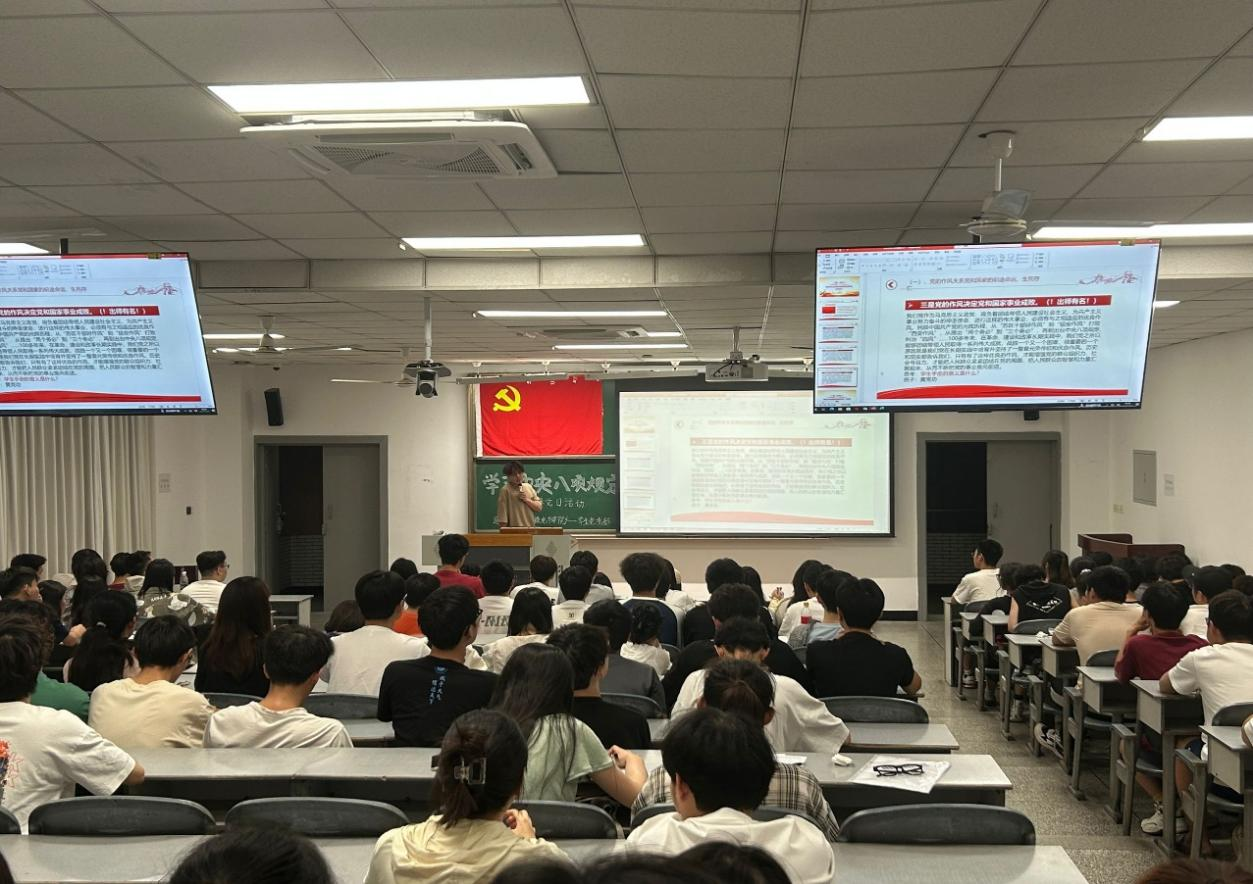 本次主题教育以集体观看以“学习中央八项规定”为主题的视频形式进行开展。当视频结束后,各支部代表党员上台分享自己准备的相关内容短视频及个人心得。本次活动旨在让党员强化纪律意识,筑牢思想防线,提升自律能力,养成廉洁意识。同时,学习并践行八项规定,能够更深刻地理解党的宗旨和纪律要求,增强“四个意识”、坚定“四个自信”、做到“两个维护”,在思想上、政治上同党中央保持高度一致。