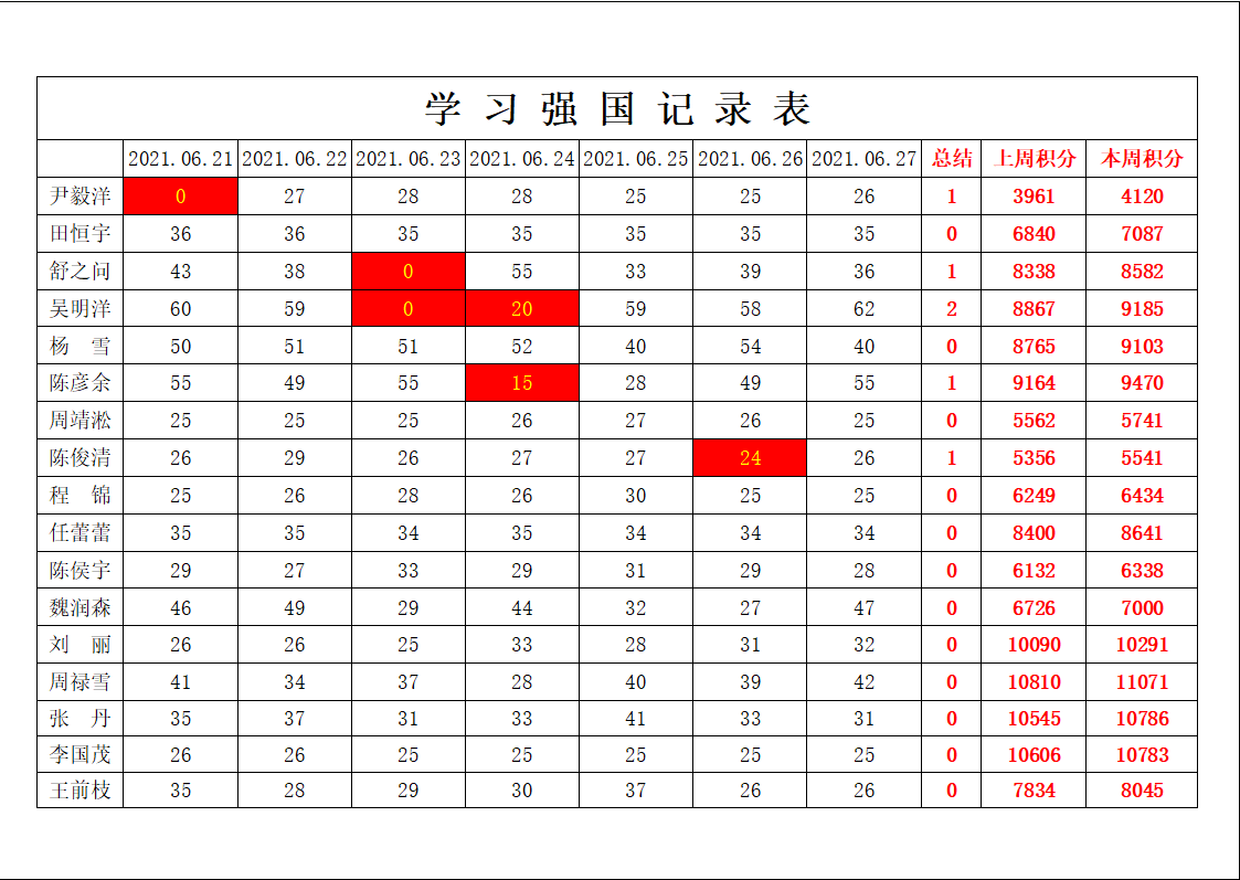 betway必威西汉姆联学生党支部2020-2021学年第二学期十七周学习强国学习进度