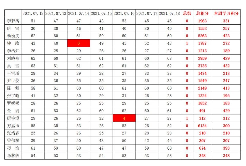 betway必威西汉姆联学生党支部2021年暑期第一周学习强国进度