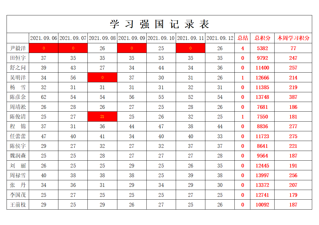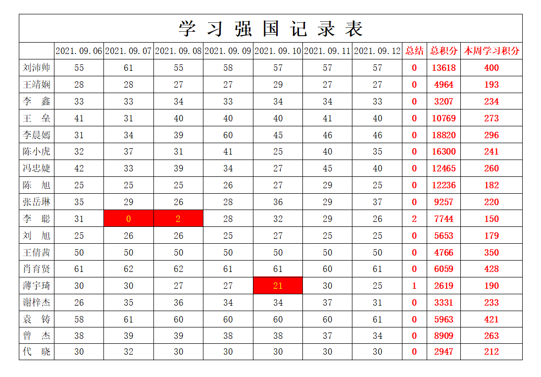 betway必威西汉姆联学生党支部2021-2022学年第一学期第一周学习强国学习进度