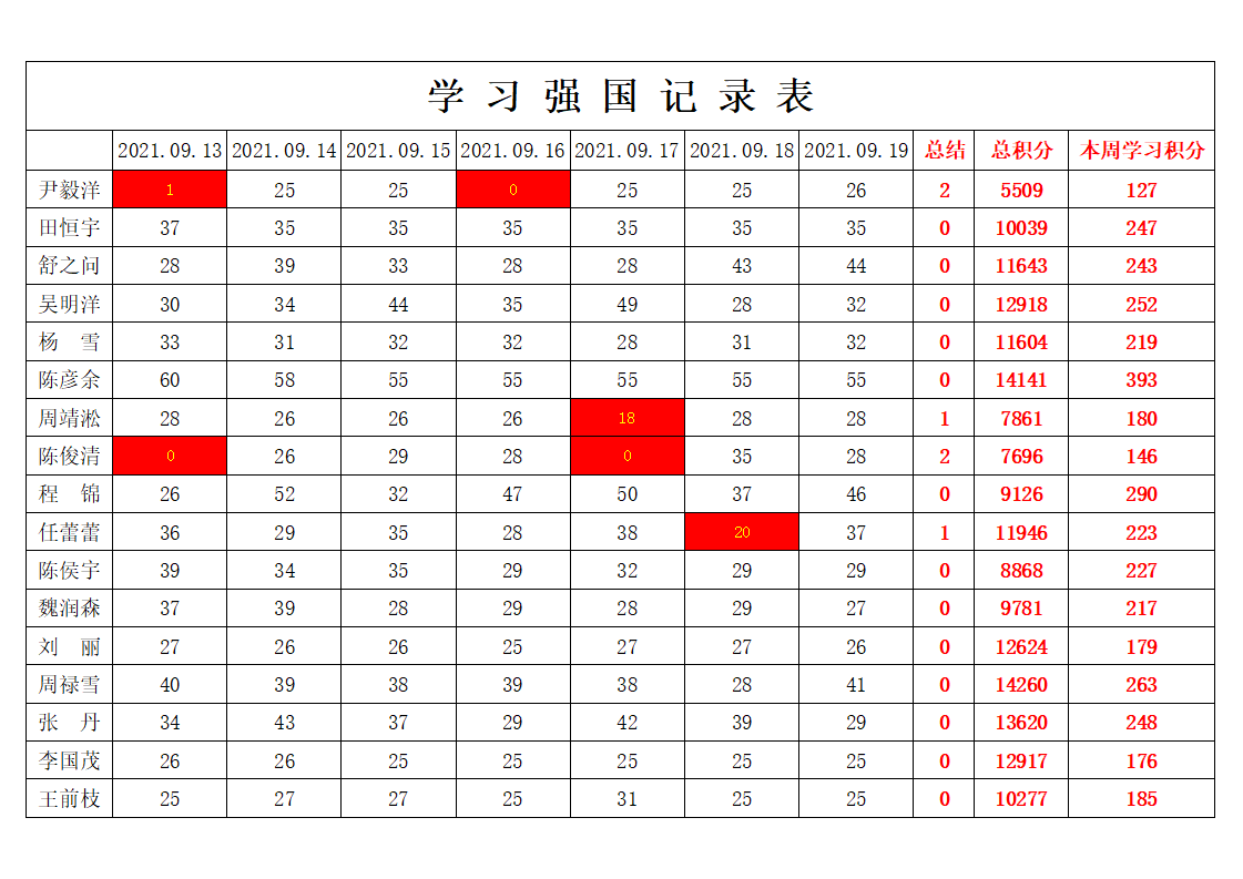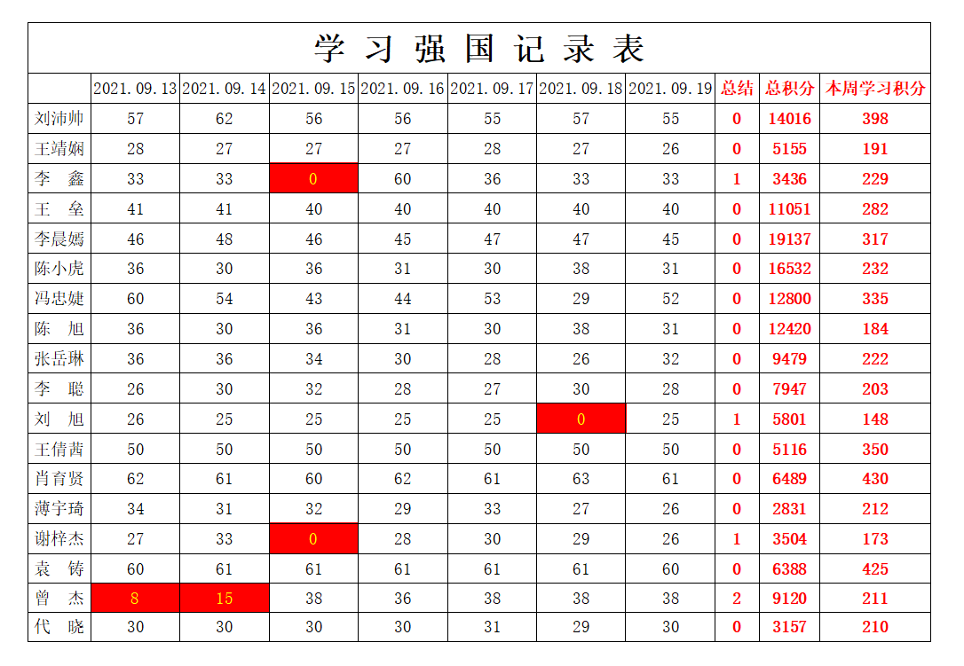 betway必威西汉姆联学生党支部2021-2022学年第一学期第二周学习强国学习进度