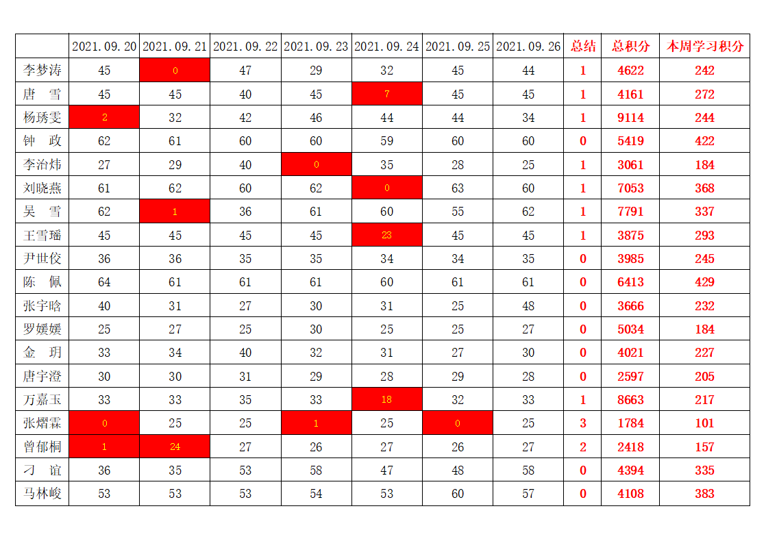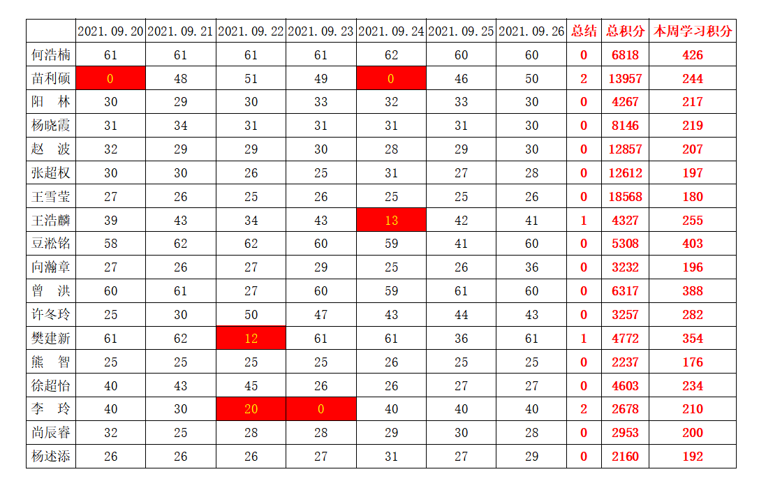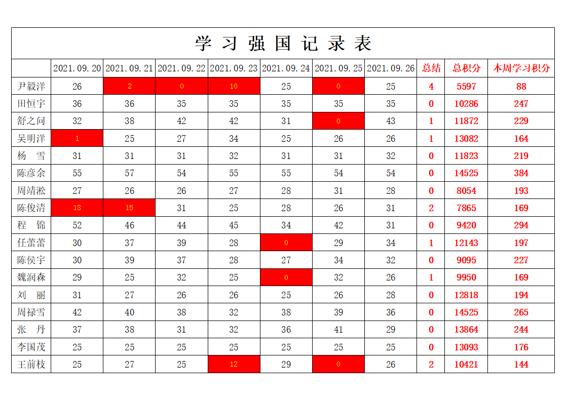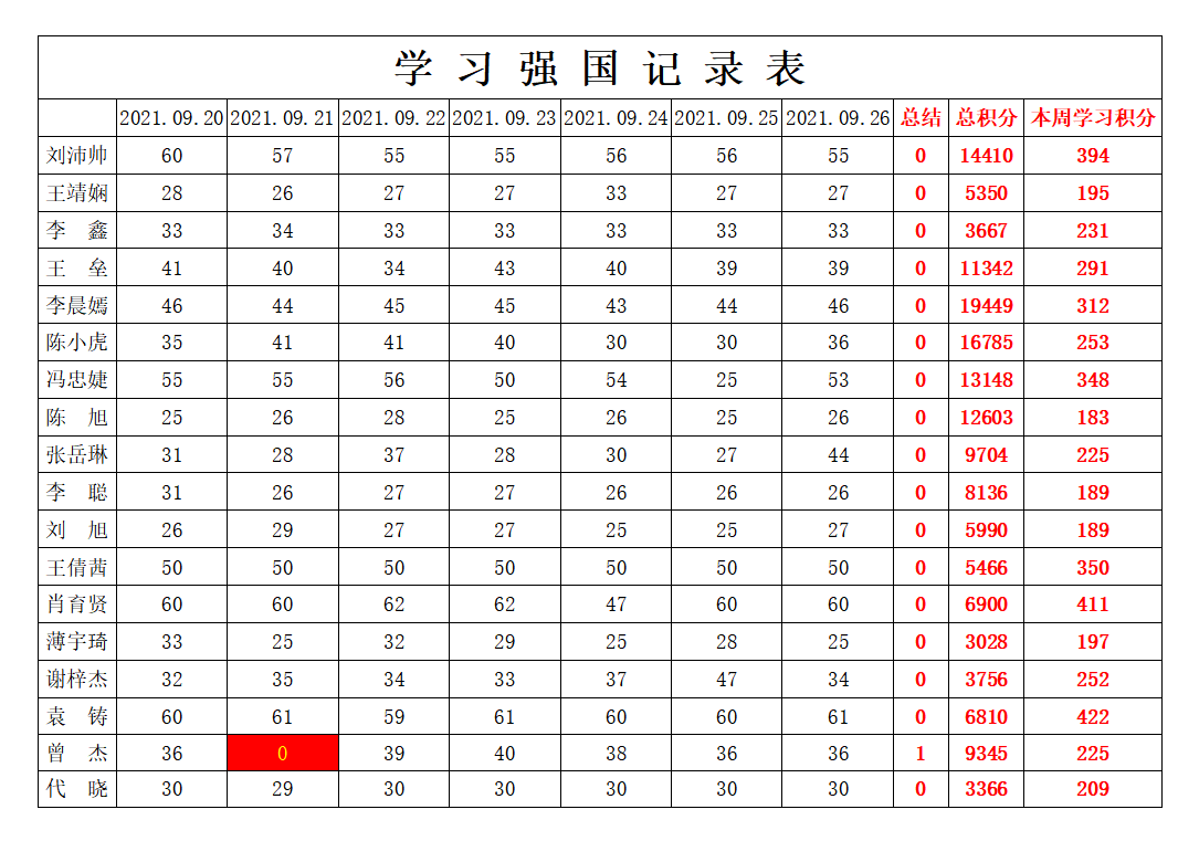 betway必威西汉姆联学生党支部2021-2022学年第一学期第三周学习强国学习进度