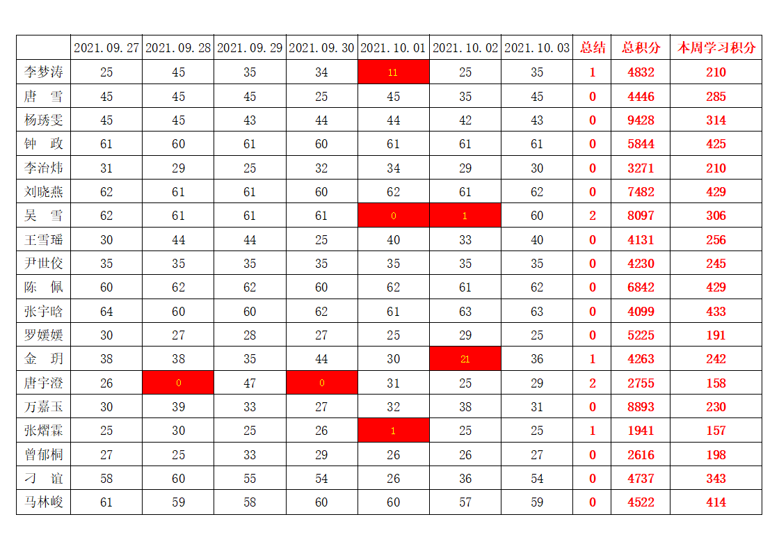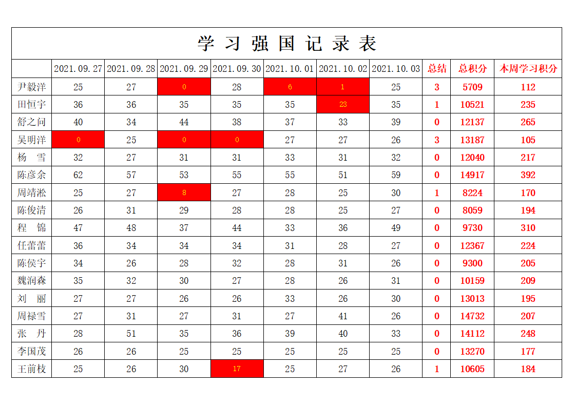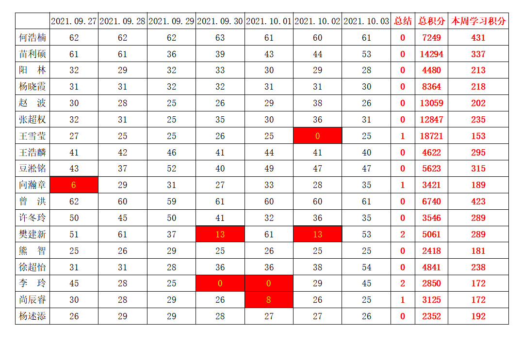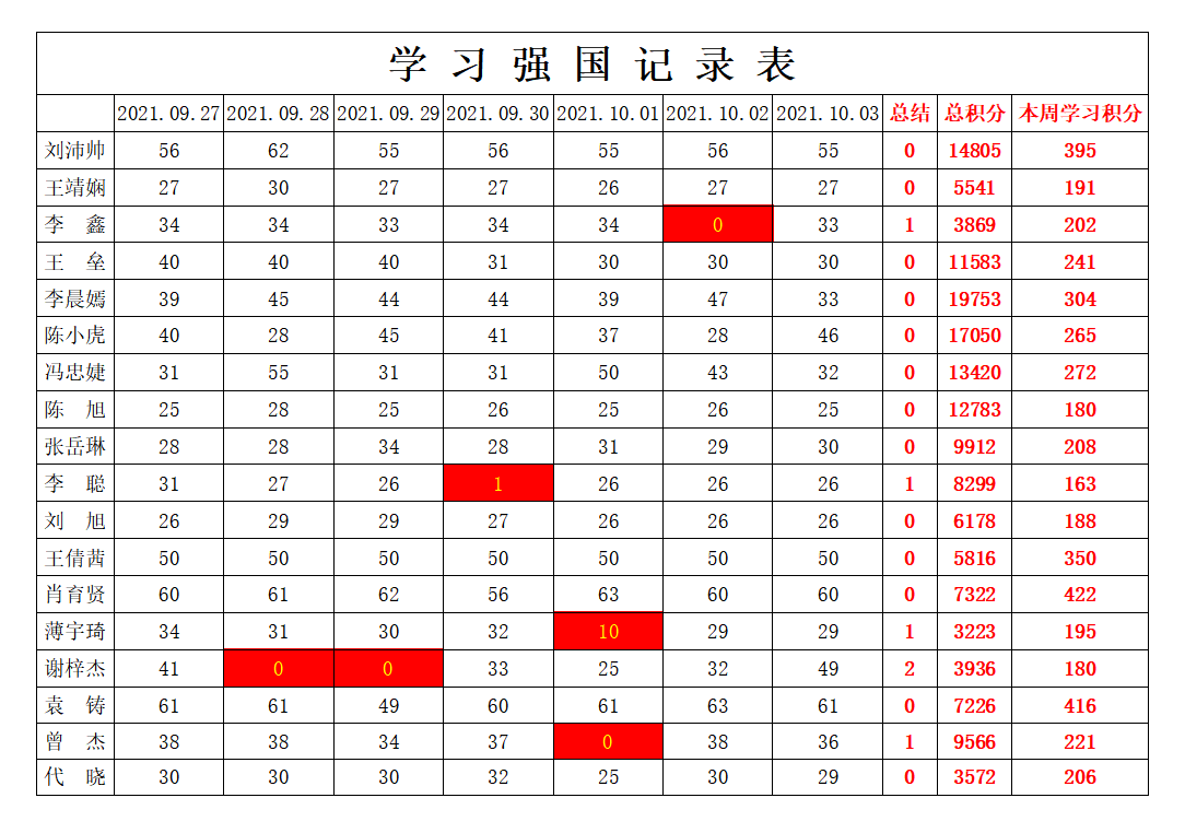 betway必威西汉姆联学生党支部2021-2022学年第一学期第四周学习强国学习进度