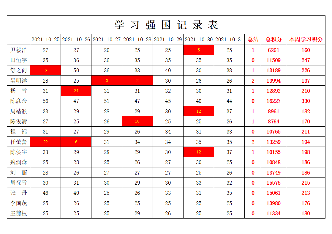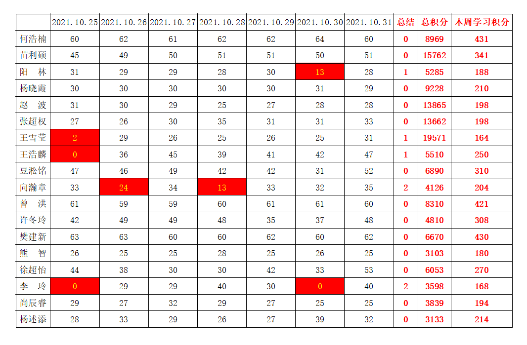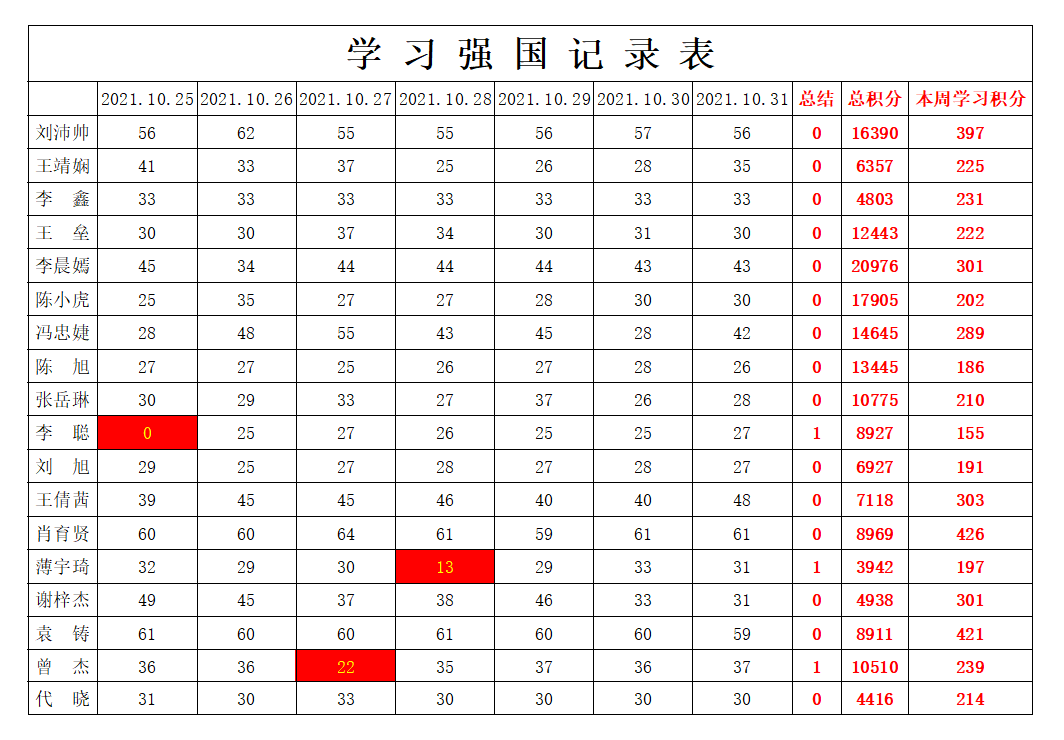betway必威西汉姆联学生党支部2021-2022学年第一学期第八周学习强国学习进度