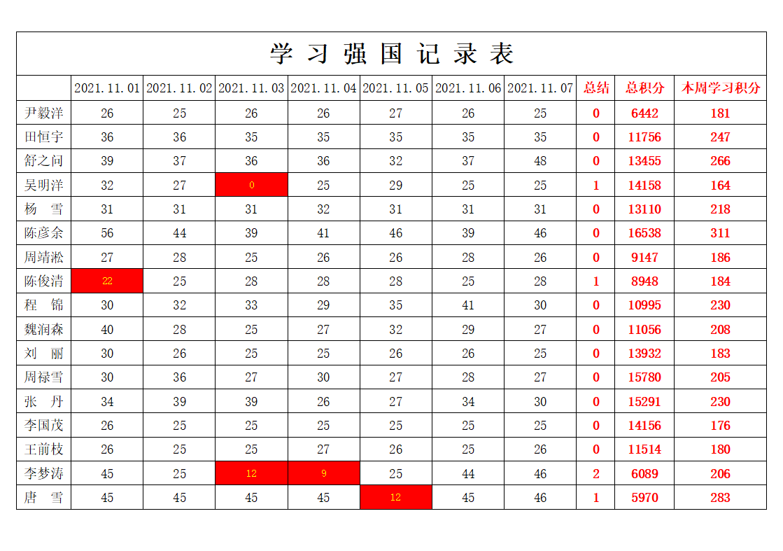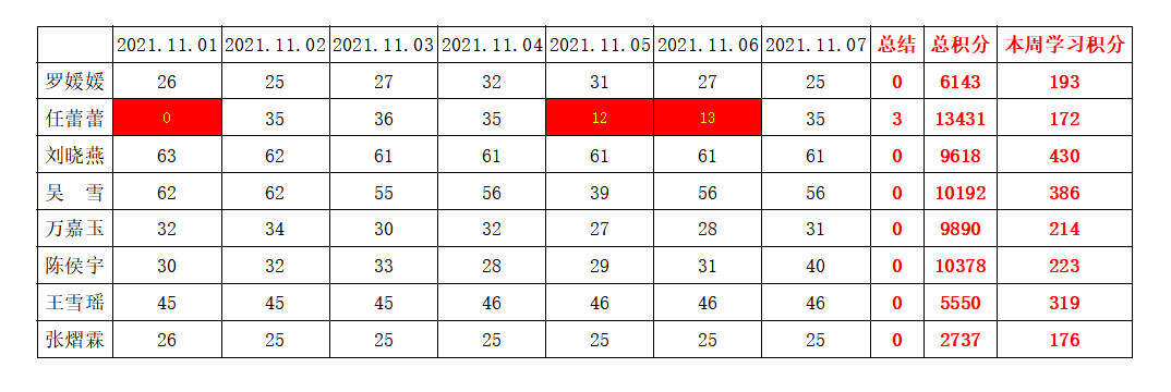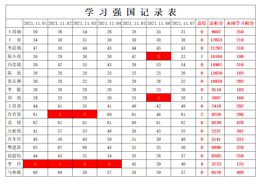 betway必威西汉姆联学生党支部2021-2022学年第一学期第九周学习强国学习进度