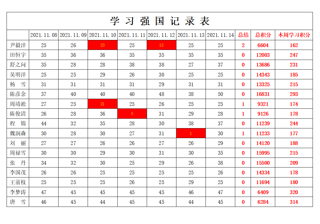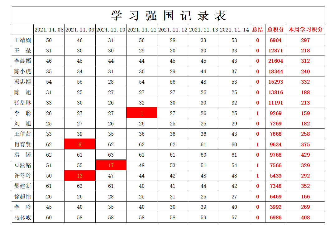 betway必威西汉姆联学生党支部2021-2022学年第一学期第十周学习强国学习进度