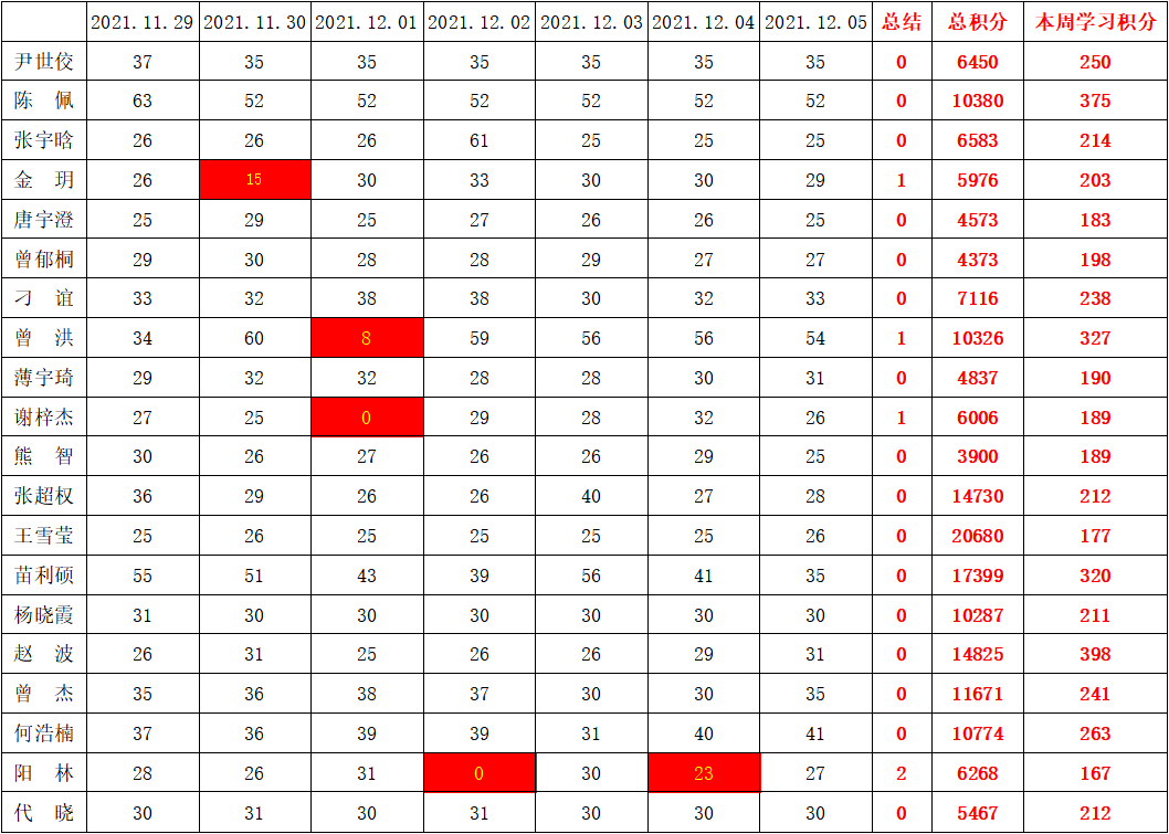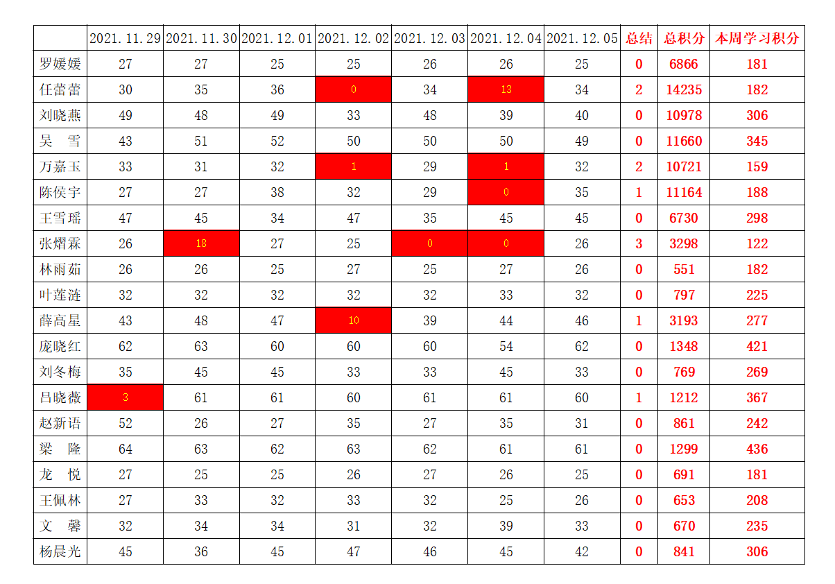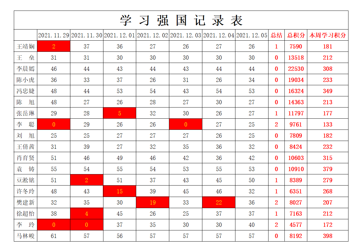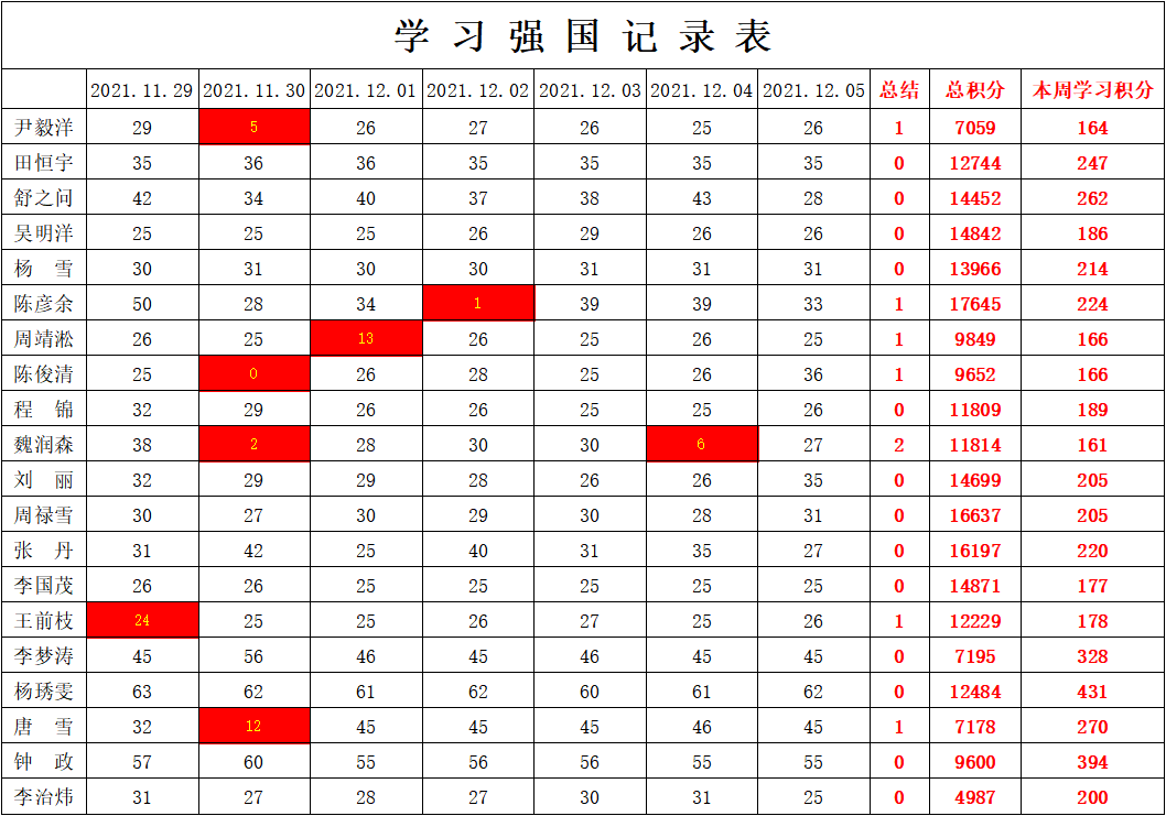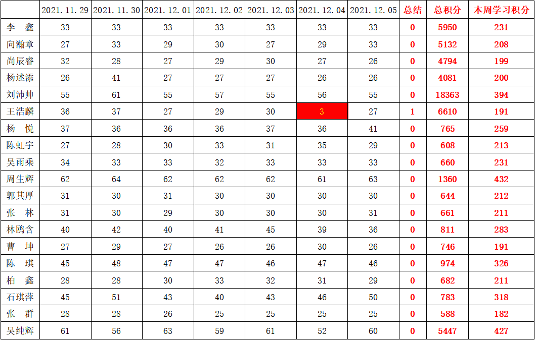 betway必威西汉姆联学生党支部2021-2022学年第一学期第十三周学习强国学习进度