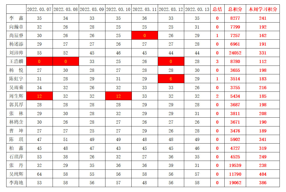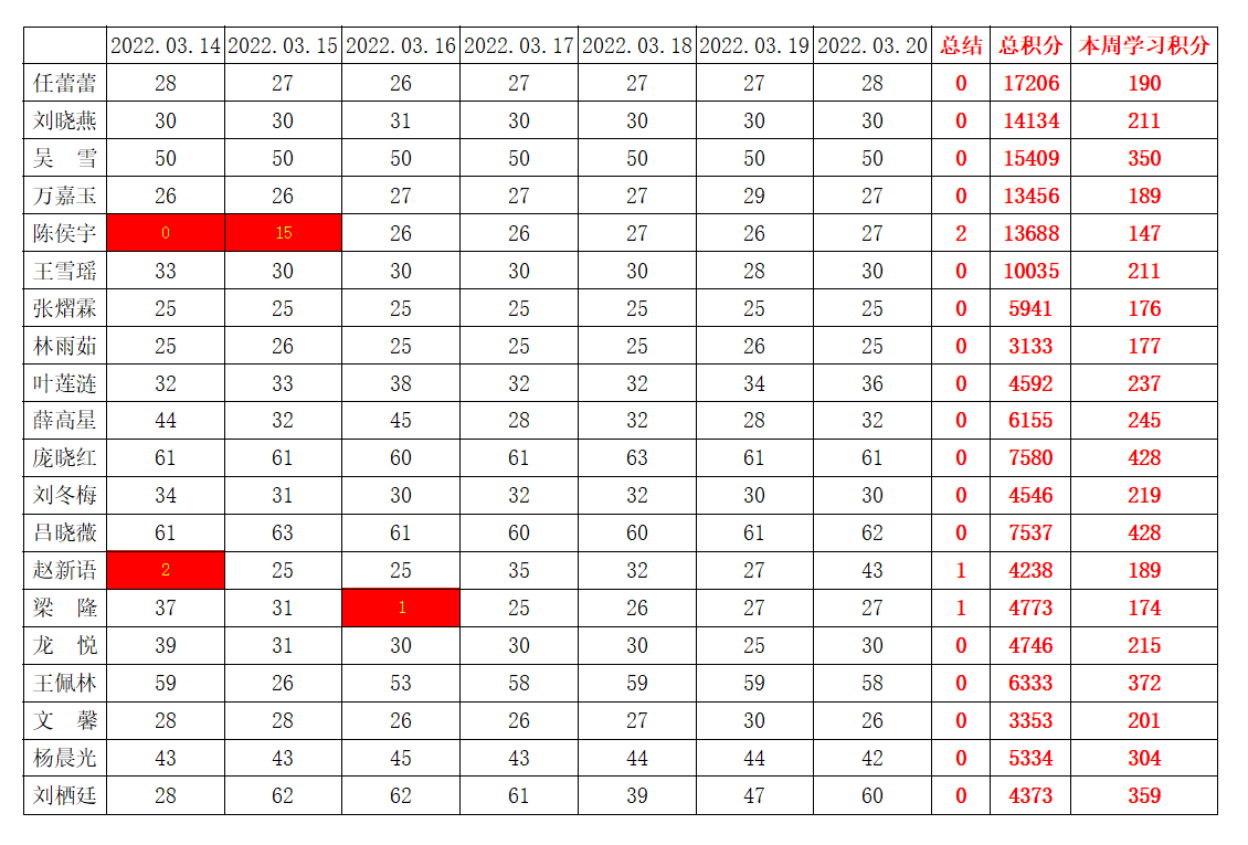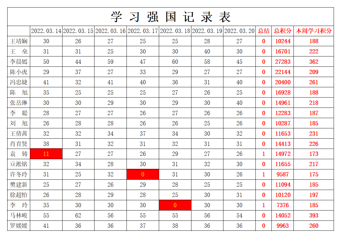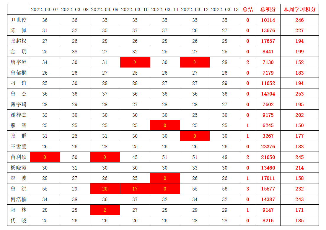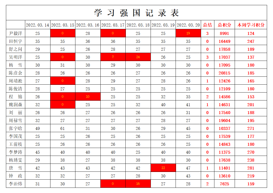 betway必威西汉姆联学生党支部2021-2022学年第二学期第四周学习强国学习进度