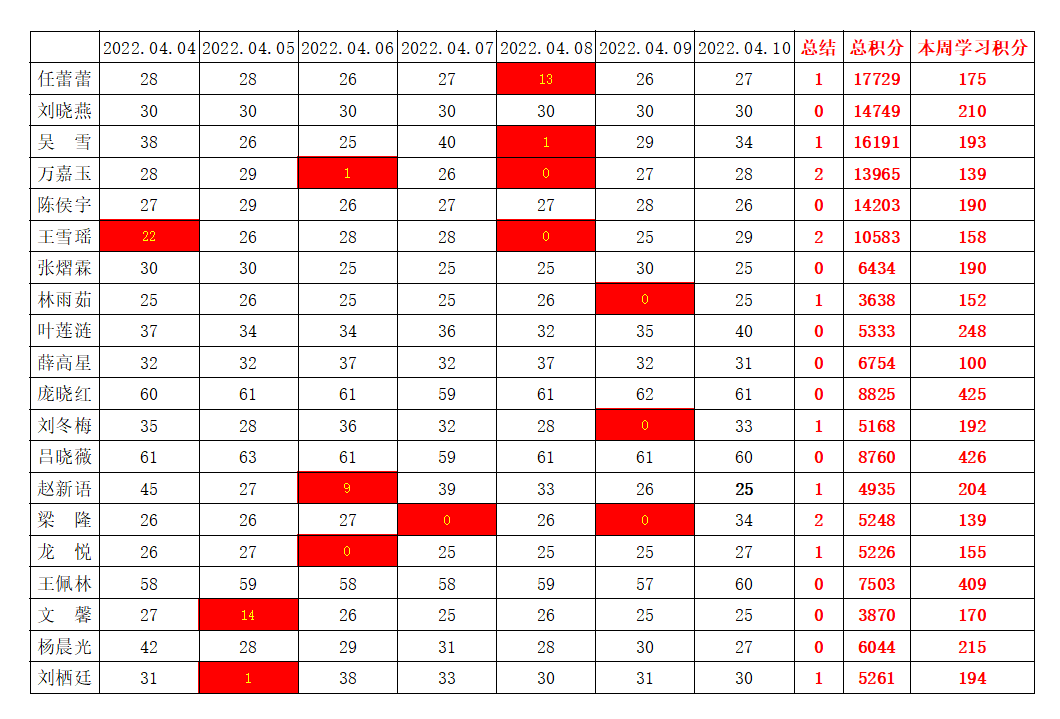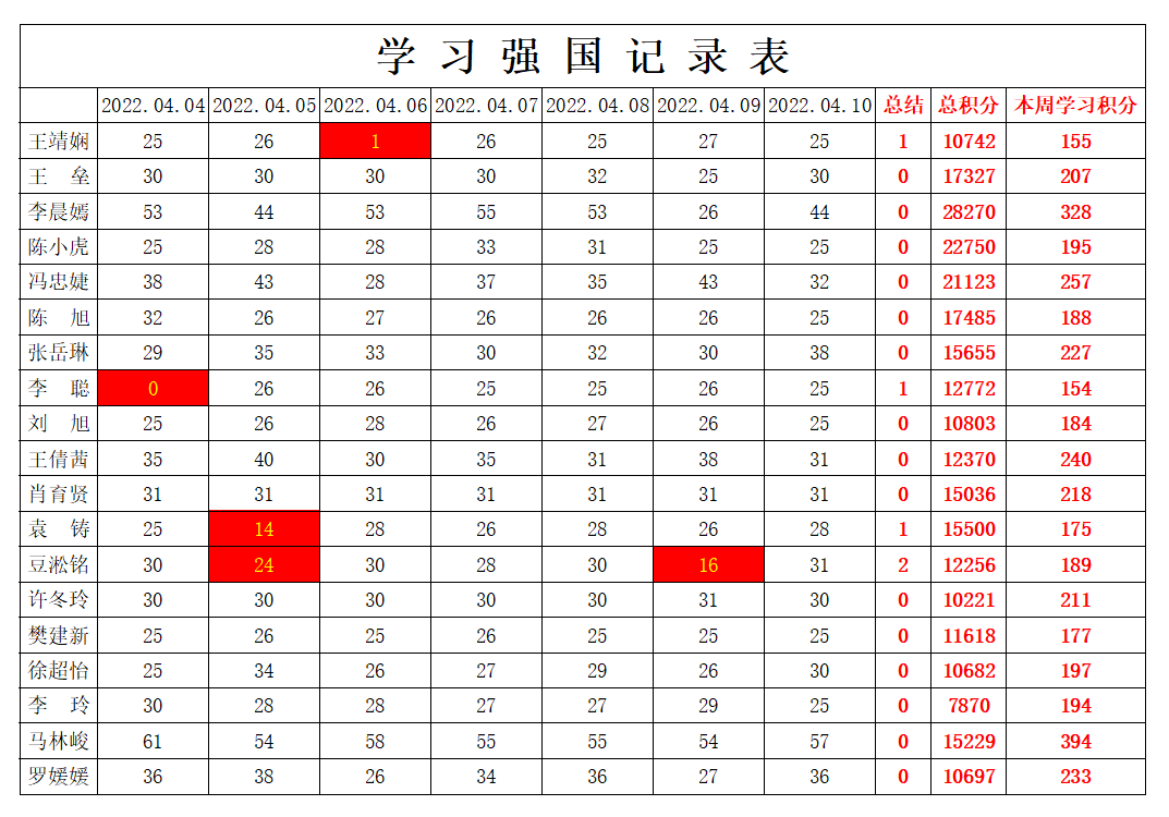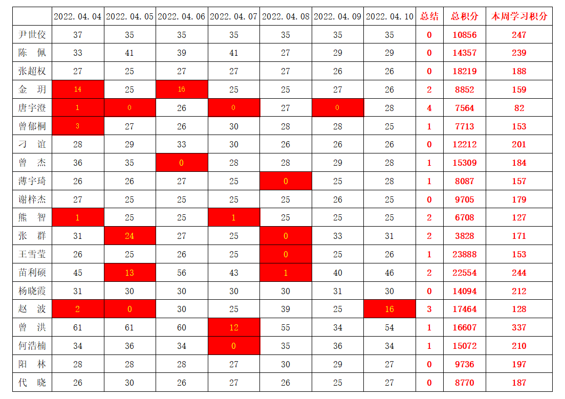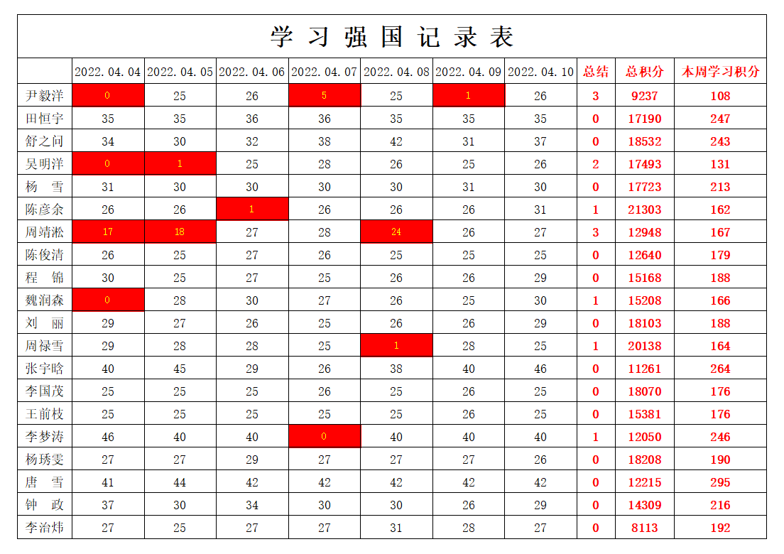 betway必威西汉姆联学生党支部2021-2022学年第二学期第七周学习强国学习进度