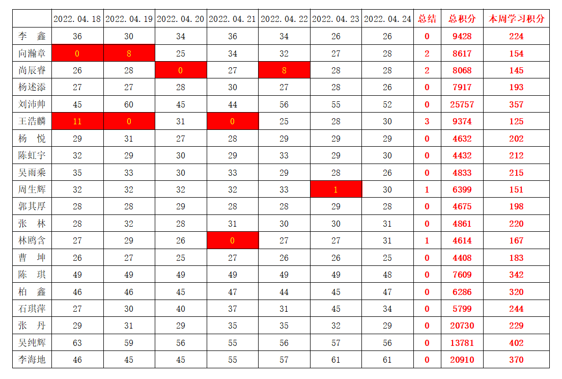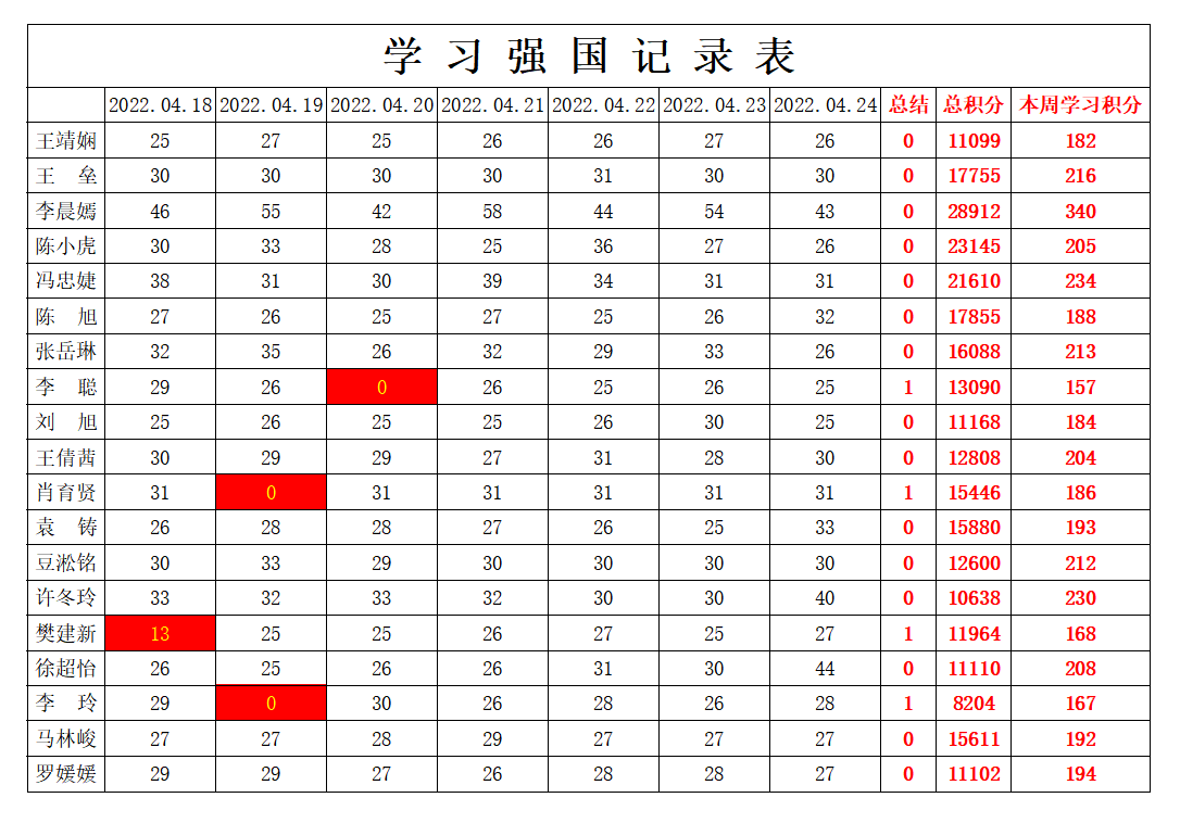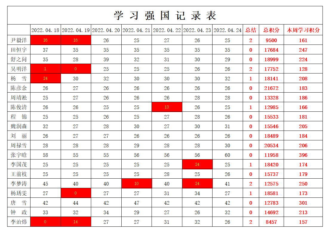 betway必威西汉姆联学生党支部2021-2022学年第二学期第九周学习强国学习进度