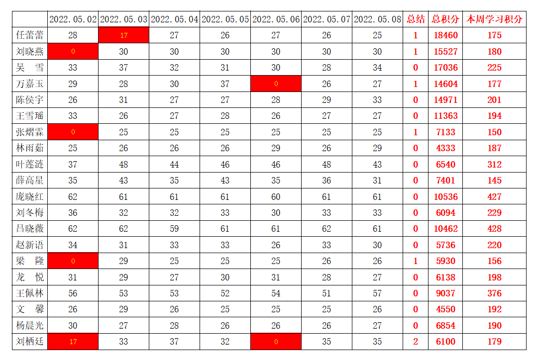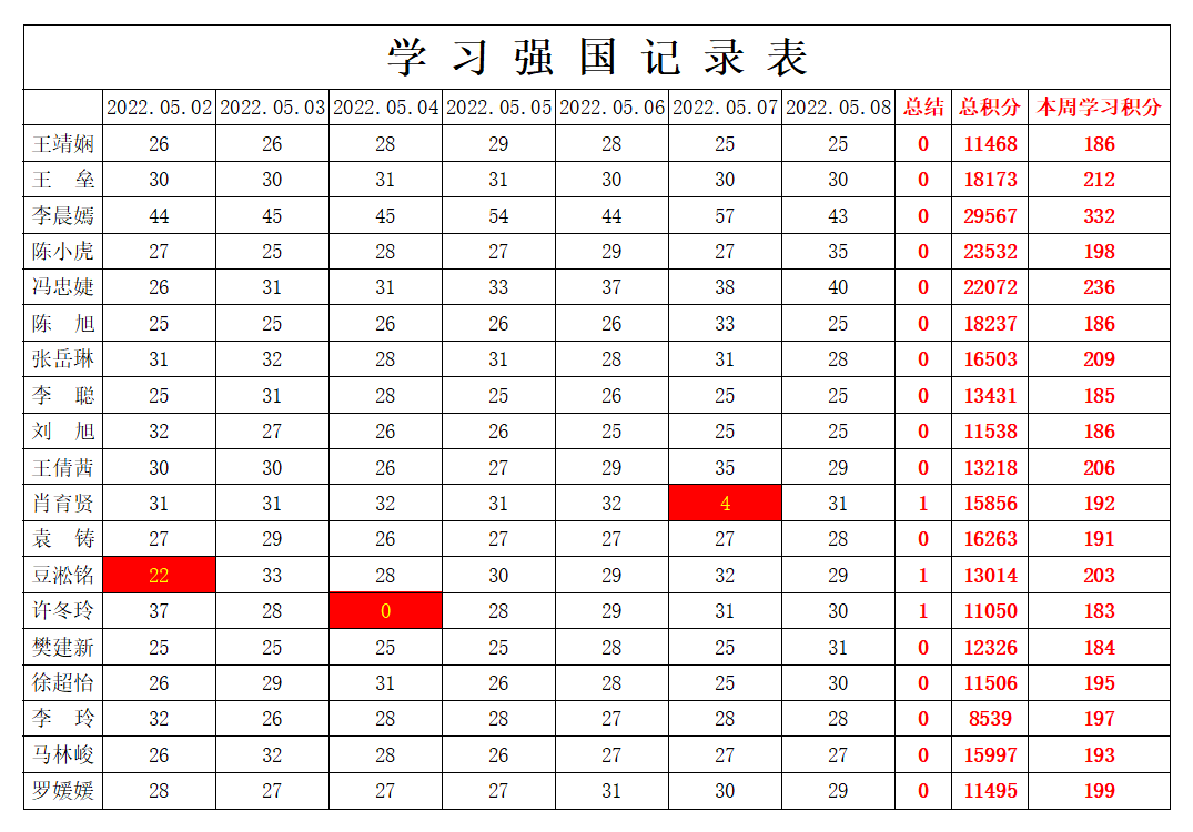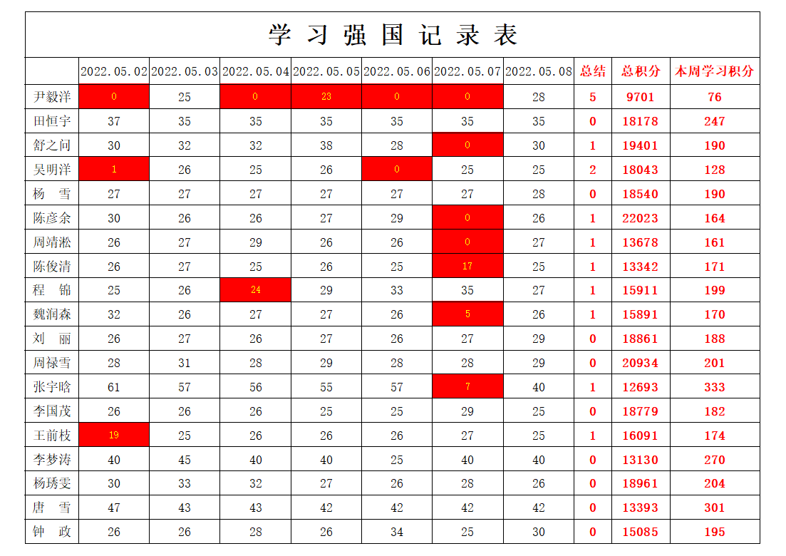 betway必威西汉姆联学生党支部2021-2022学年第二学期第十一周学习强国学习进度
