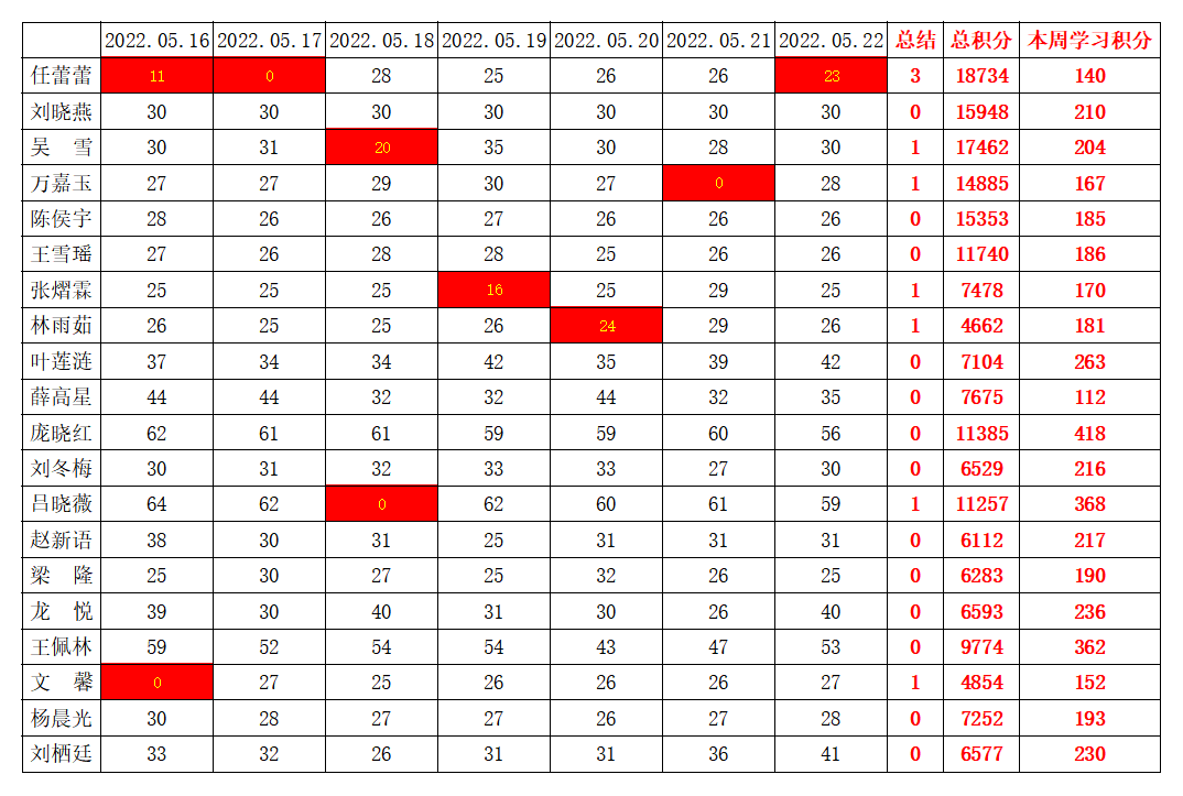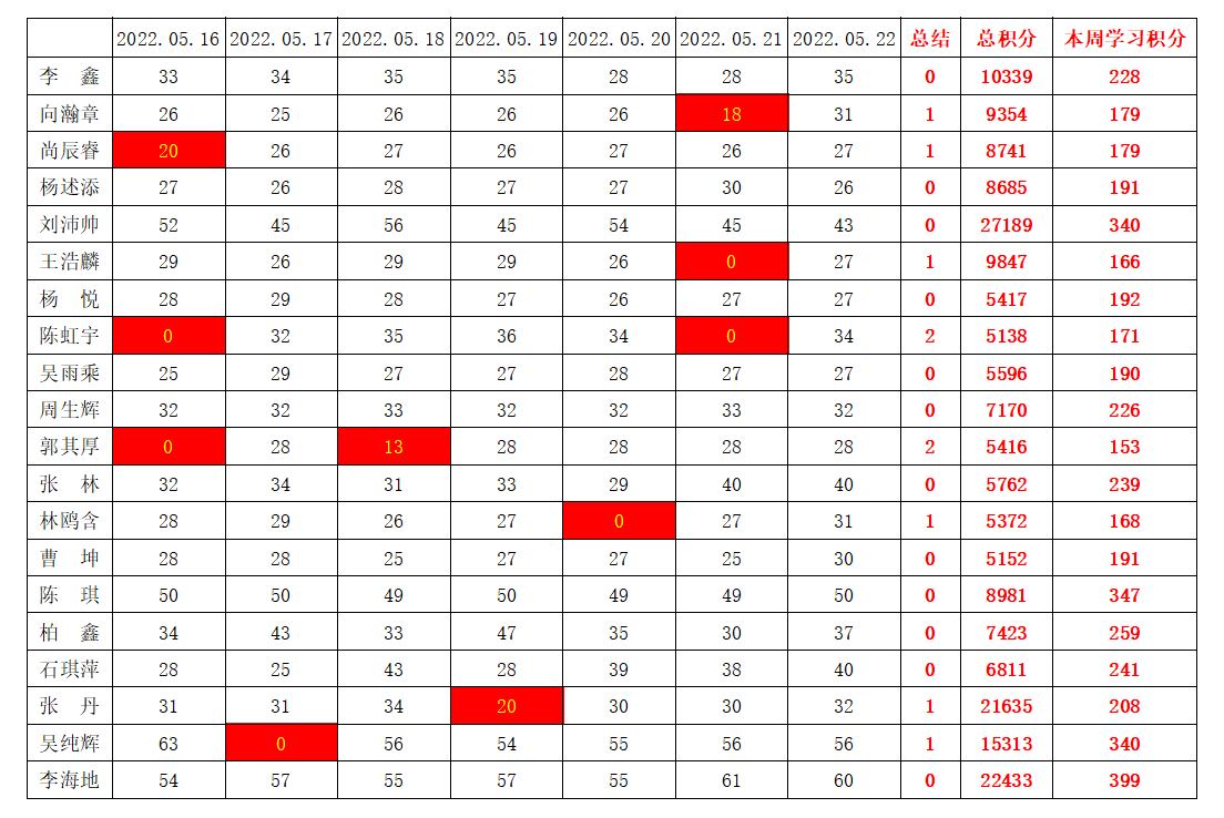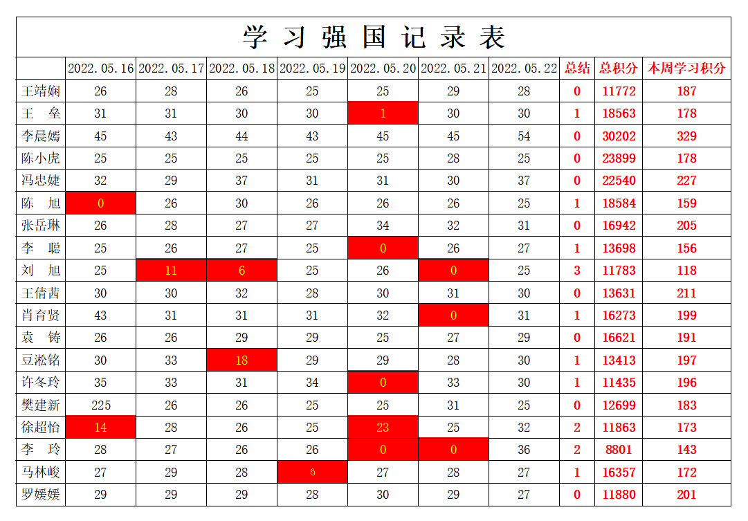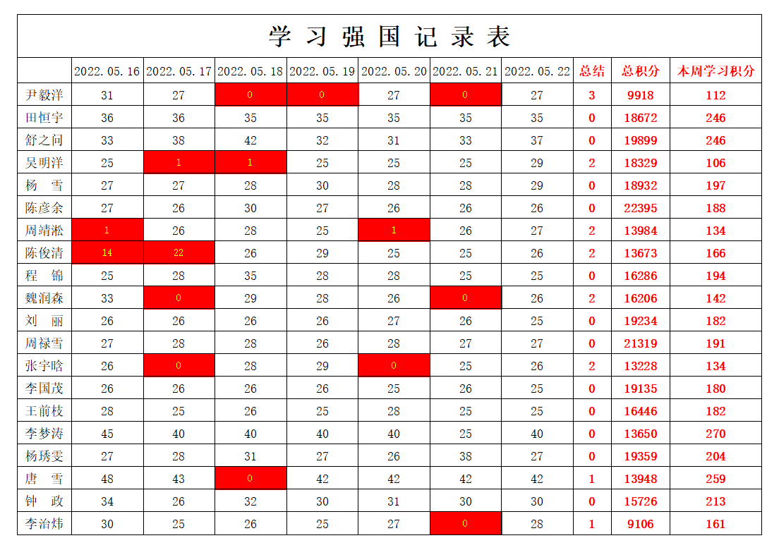 betway必威西汉姆联学生党支部2021-2022学年第二学期第十三周学习强国学习进度