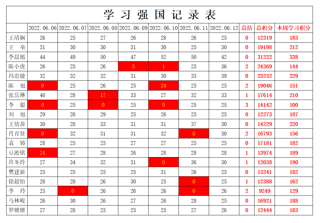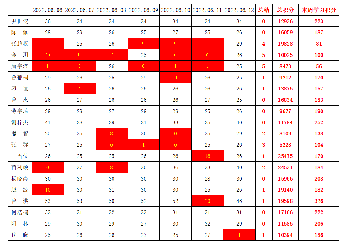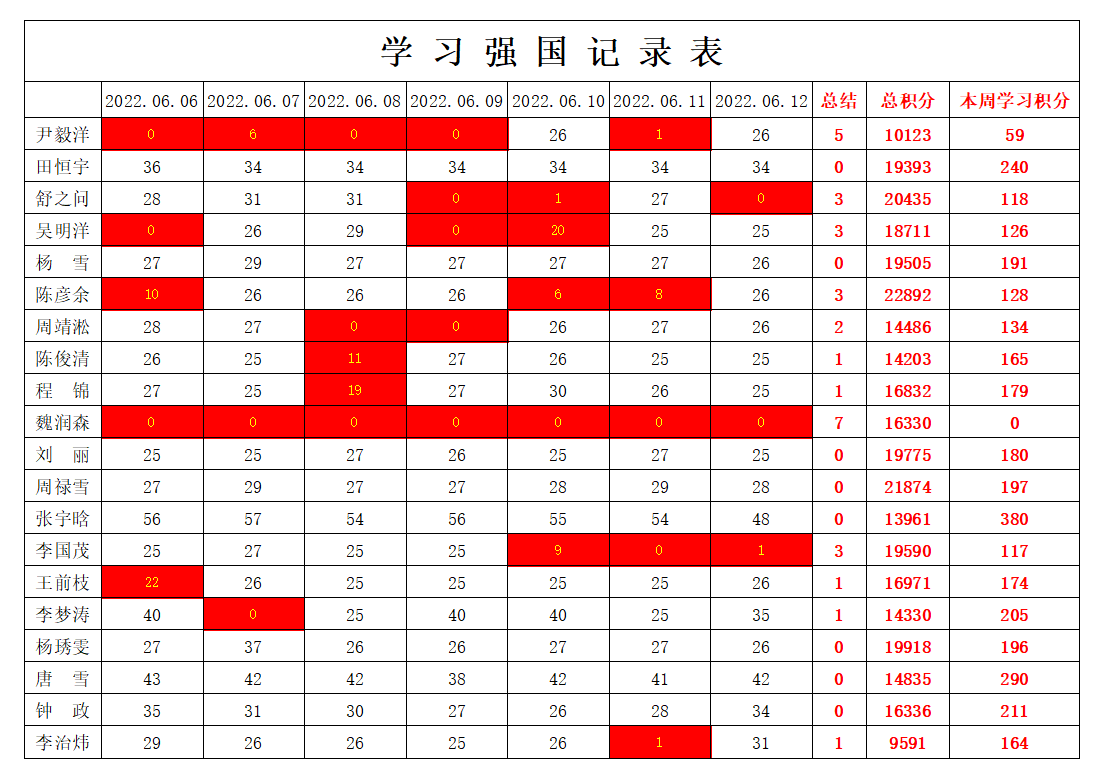 betway必威西汉姆联学生党支部2021-2022学年第二学期第十六周学习强国学习进度