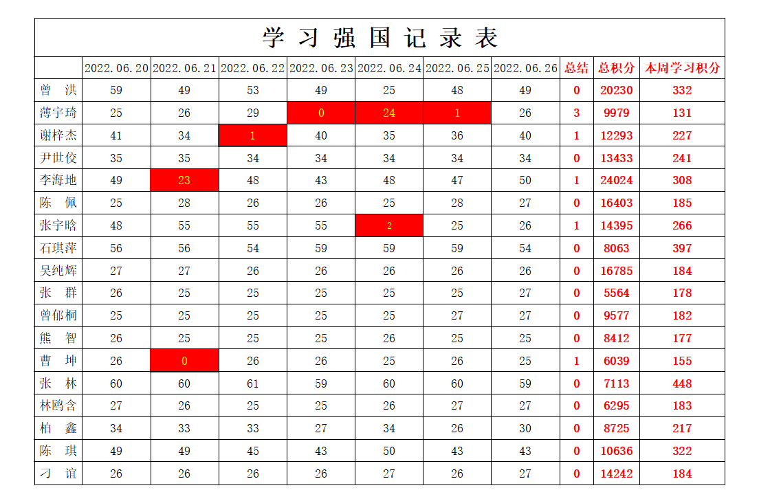 betway必威西汉姆联学生党支部2022年暑假第二周学习强国进度