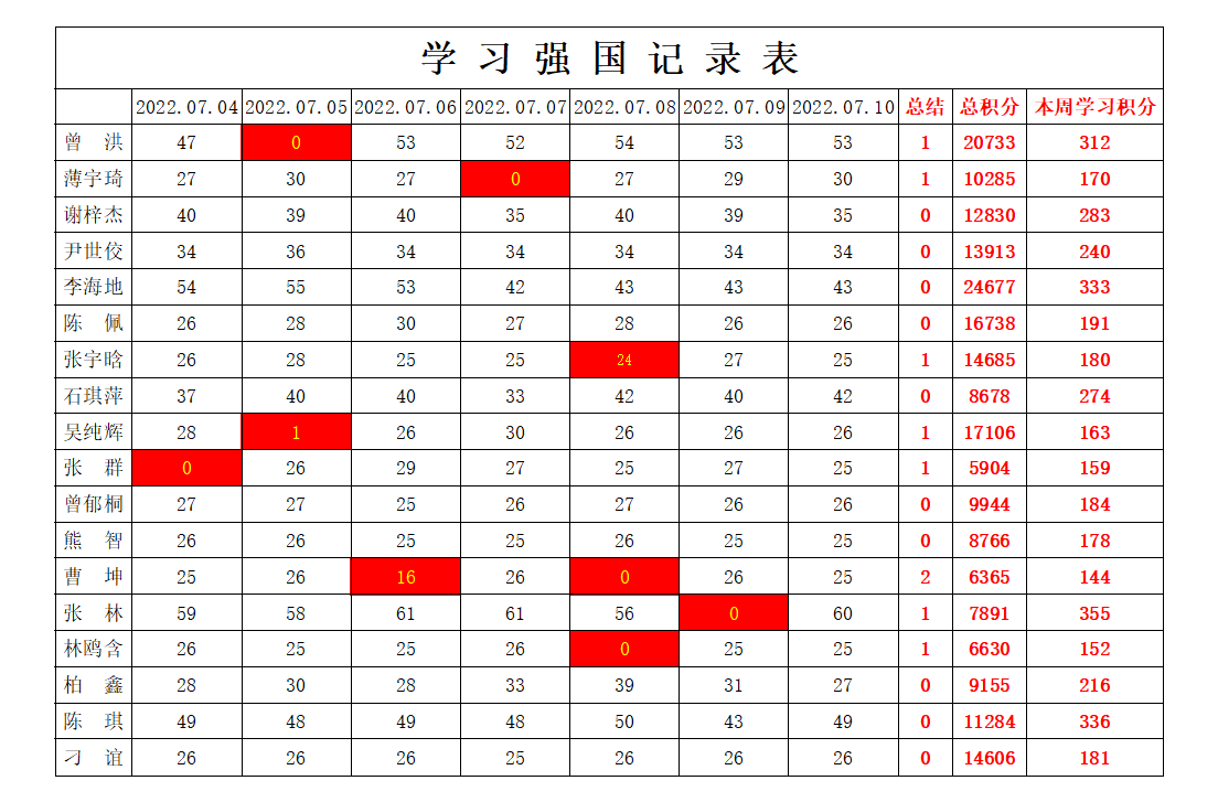 betway必威西汉姆联学生党支部2022年暑假第四周学习强国进度
