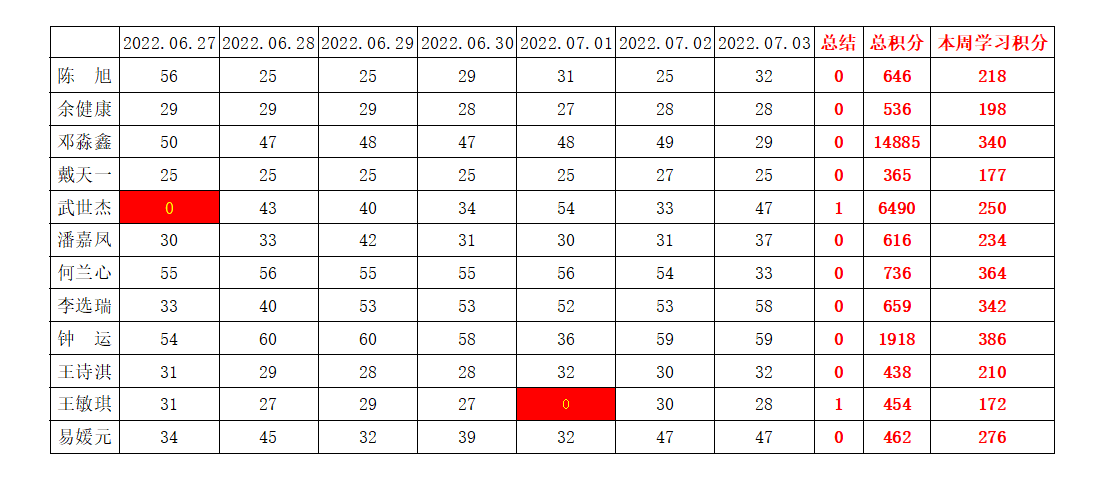 betway必威西汉姆联学生党支部2022年暑假第三周学习强国进度