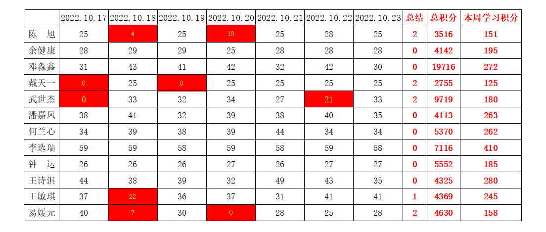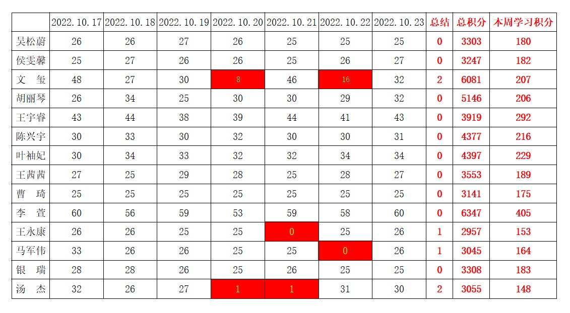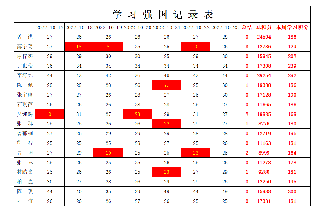 betway必威西汉姆联学生党支部2022-2023学年第一学期第六周学习强国学习进度
