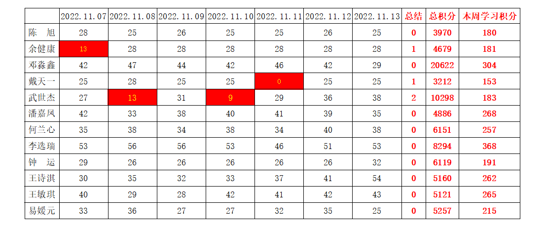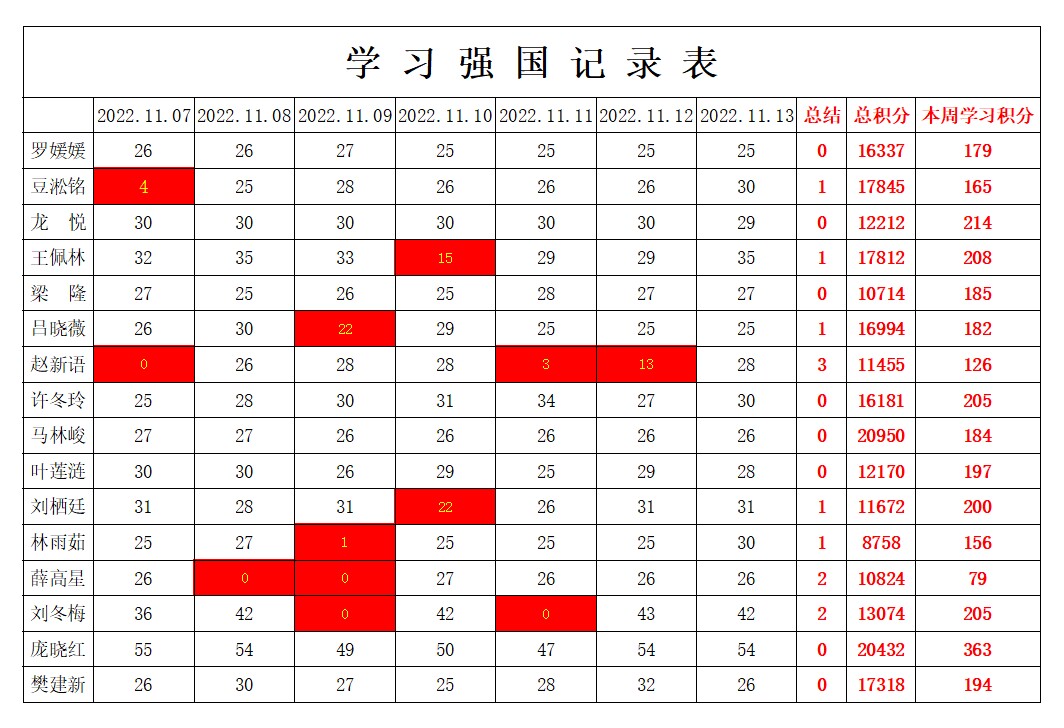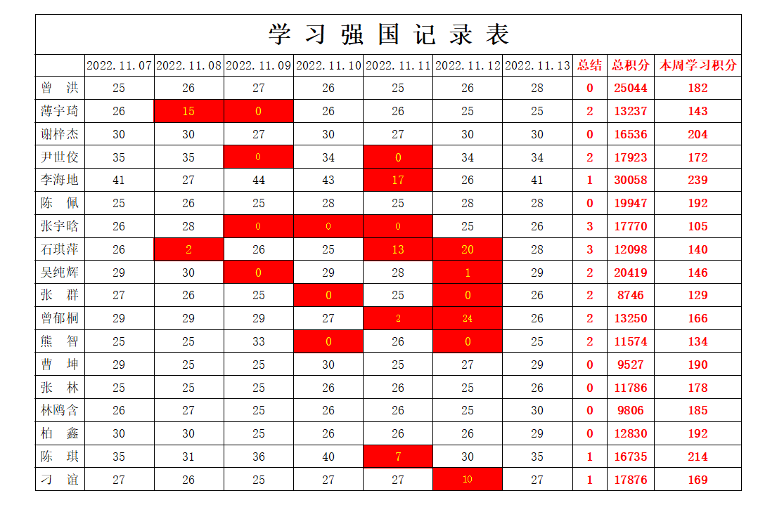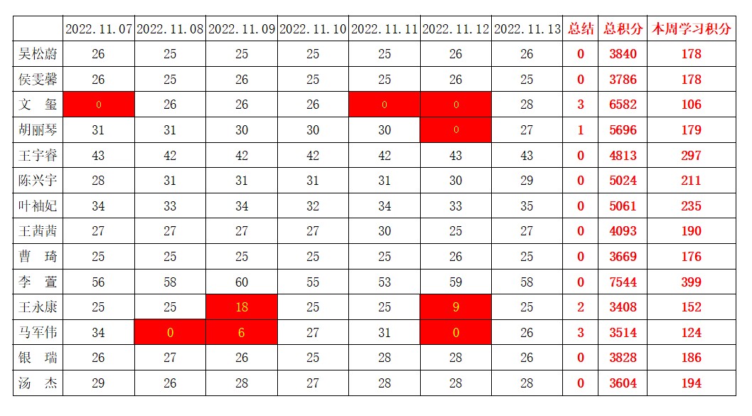betway必威西汉姆联学生党支部2022-2023学年第一学期第九周学习强国学习进度
