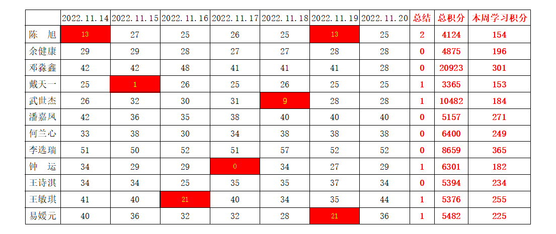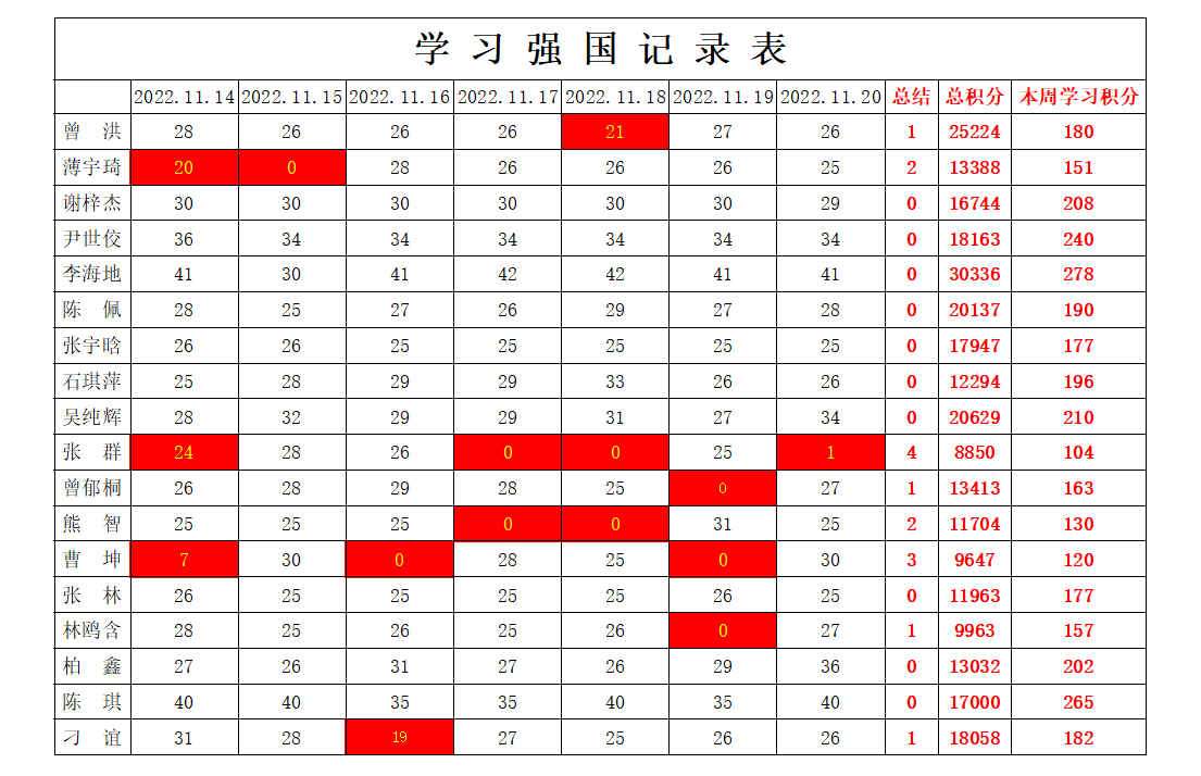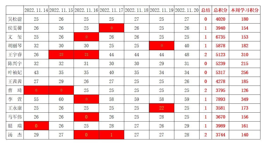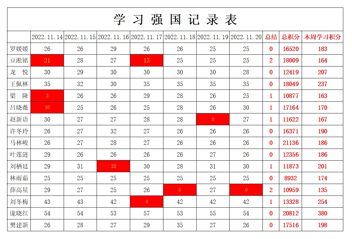 betway必威西汉姆联学生党支部2022-2023学年第一学期第十周学习强国学习进度