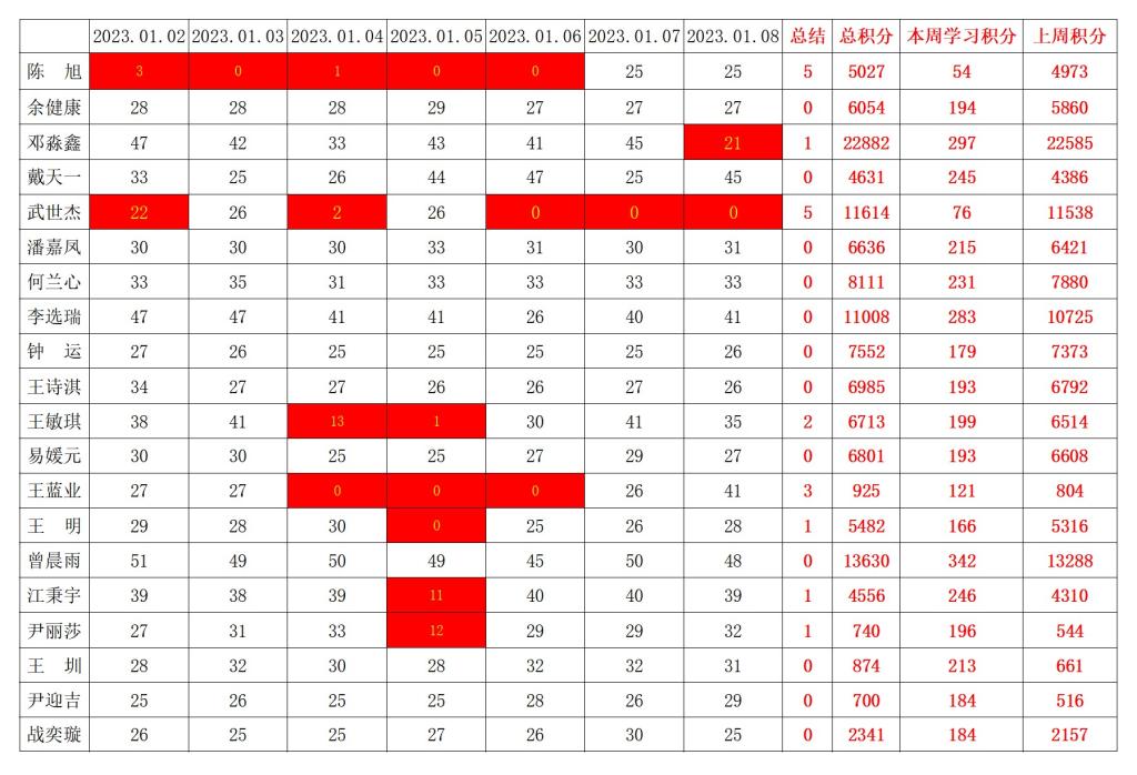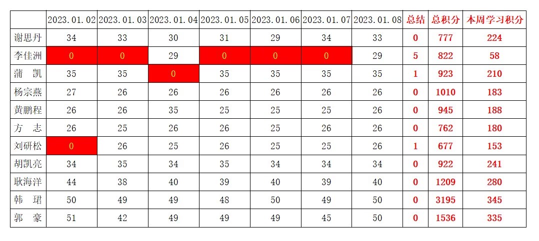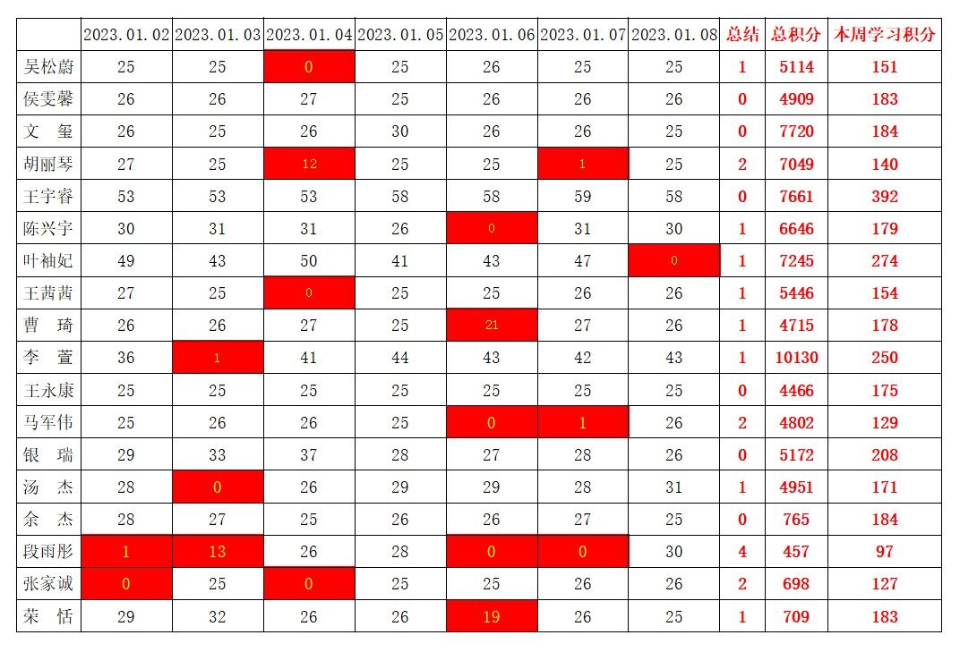 betway必威西汉姆联学生党支部2022-2023学年第一学期第十七周学习强国学习进度
