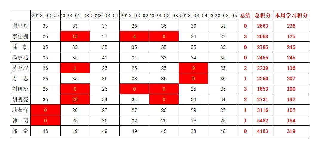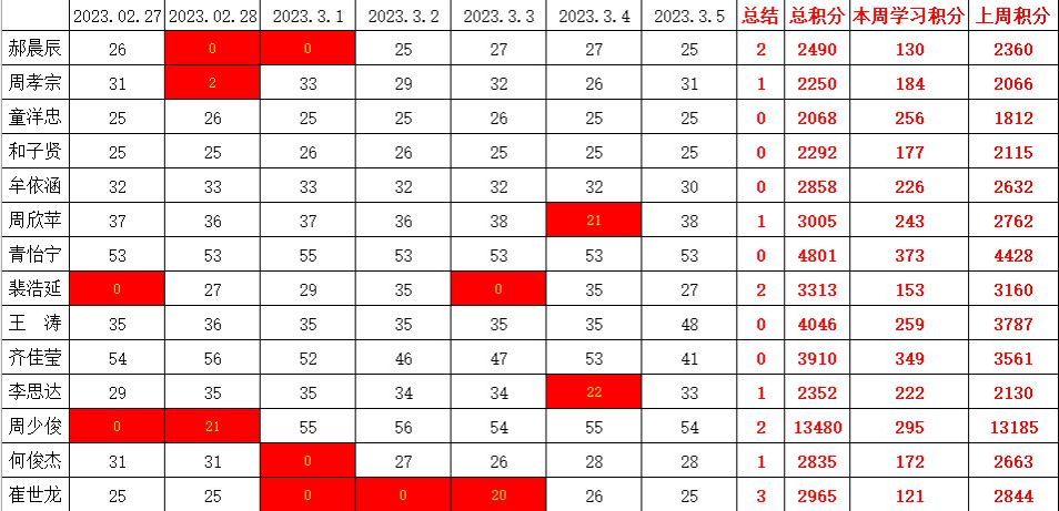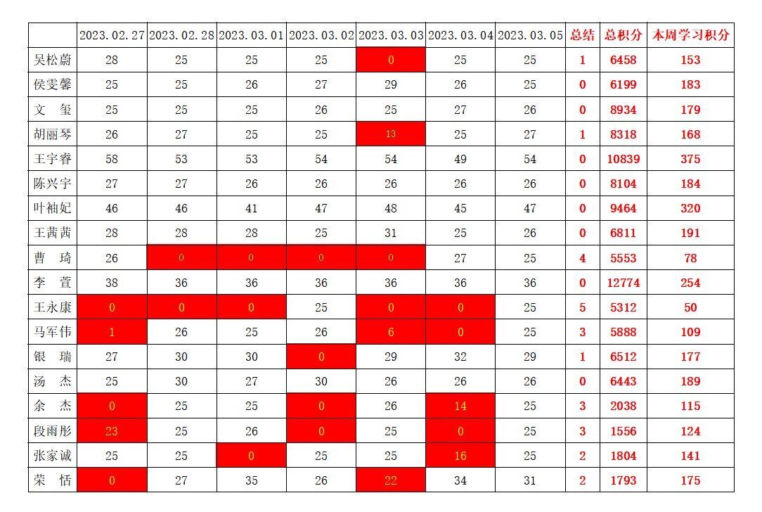 betway必威西汉姆联学生党支部2022-2023学年第二学期第二周学习强国学习进度