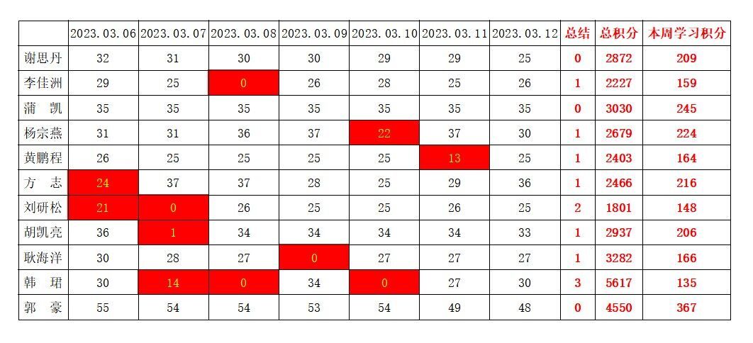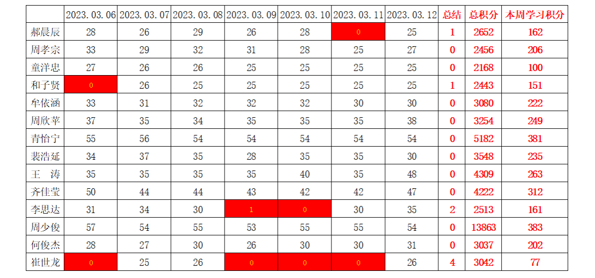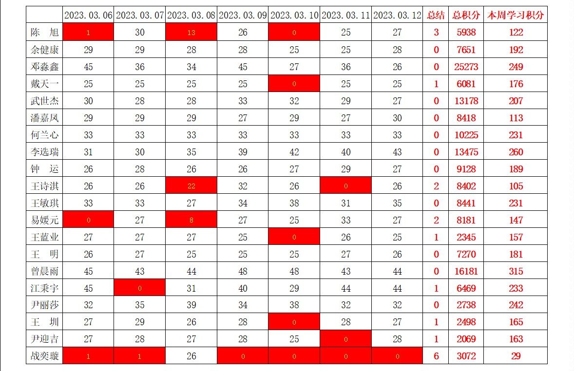 betway必威西汉姆联学生党支部2022-2023学年第二学期第三周学习强国学习进度