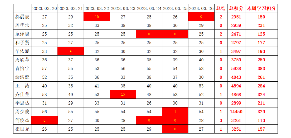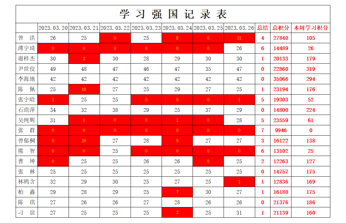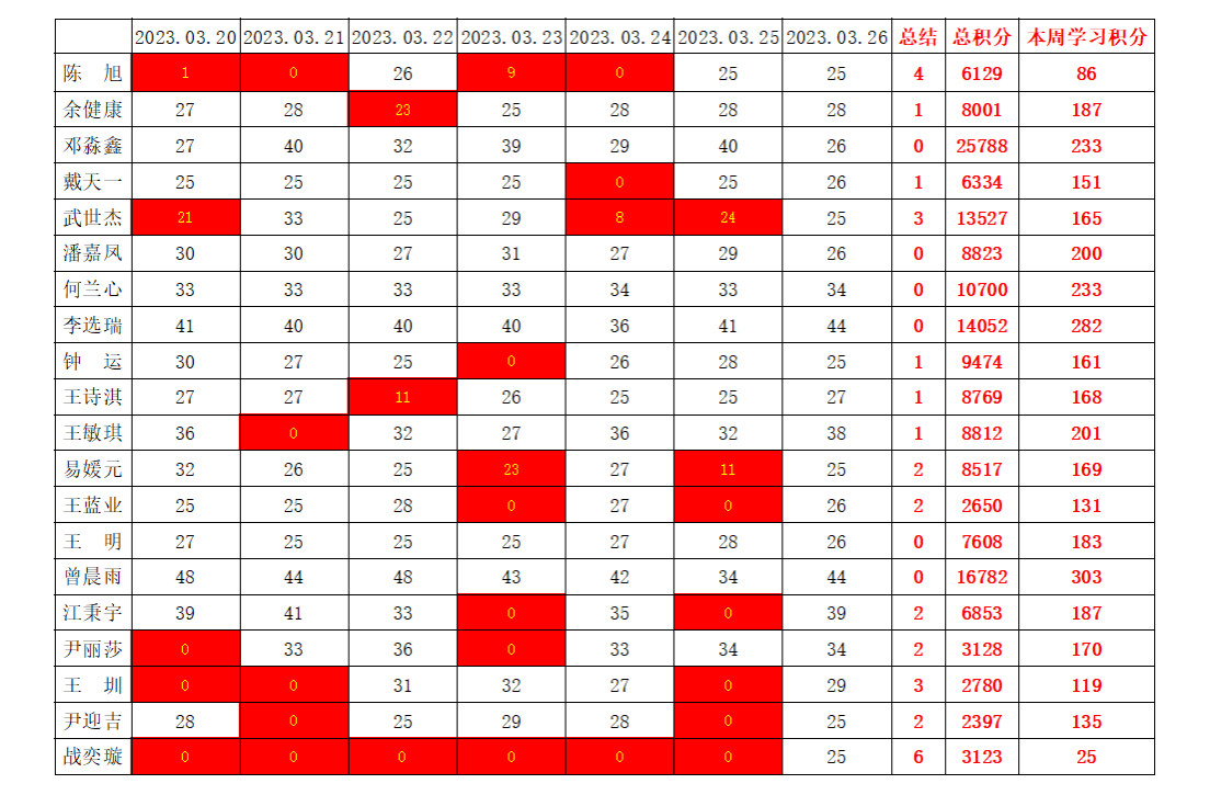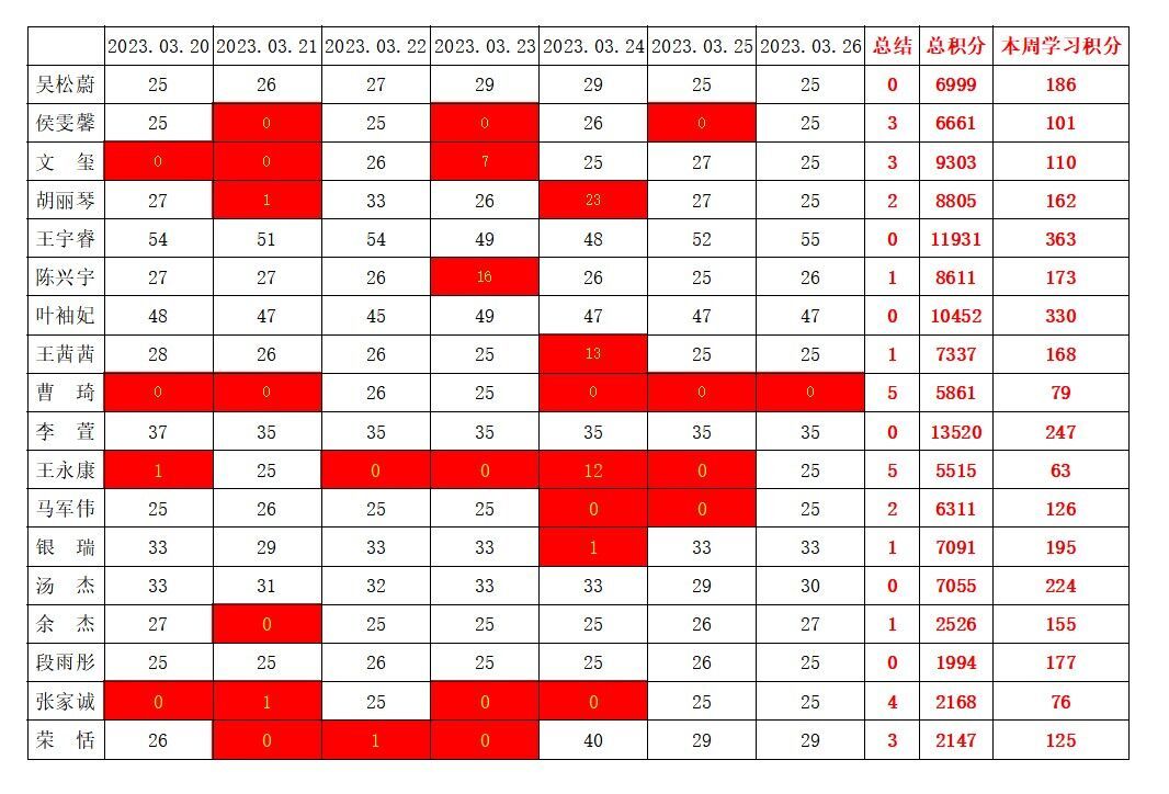betway必威西汉姆联学生党支部2022-2023学年第二学期第五周学习强国学习进度