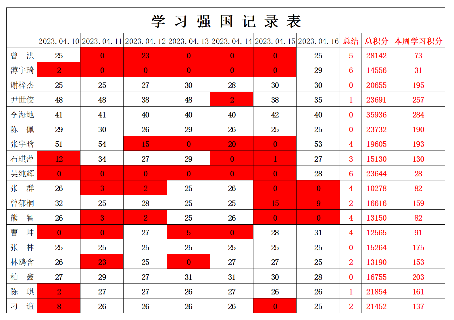 betway必威西汉姆联学生党支部2022-2023学年第二学期第八周学习强国学习进度