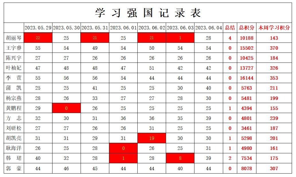 betway必威西汉姆联学生党支部2022-2023学年第二学期第十五周学习强国学习进度