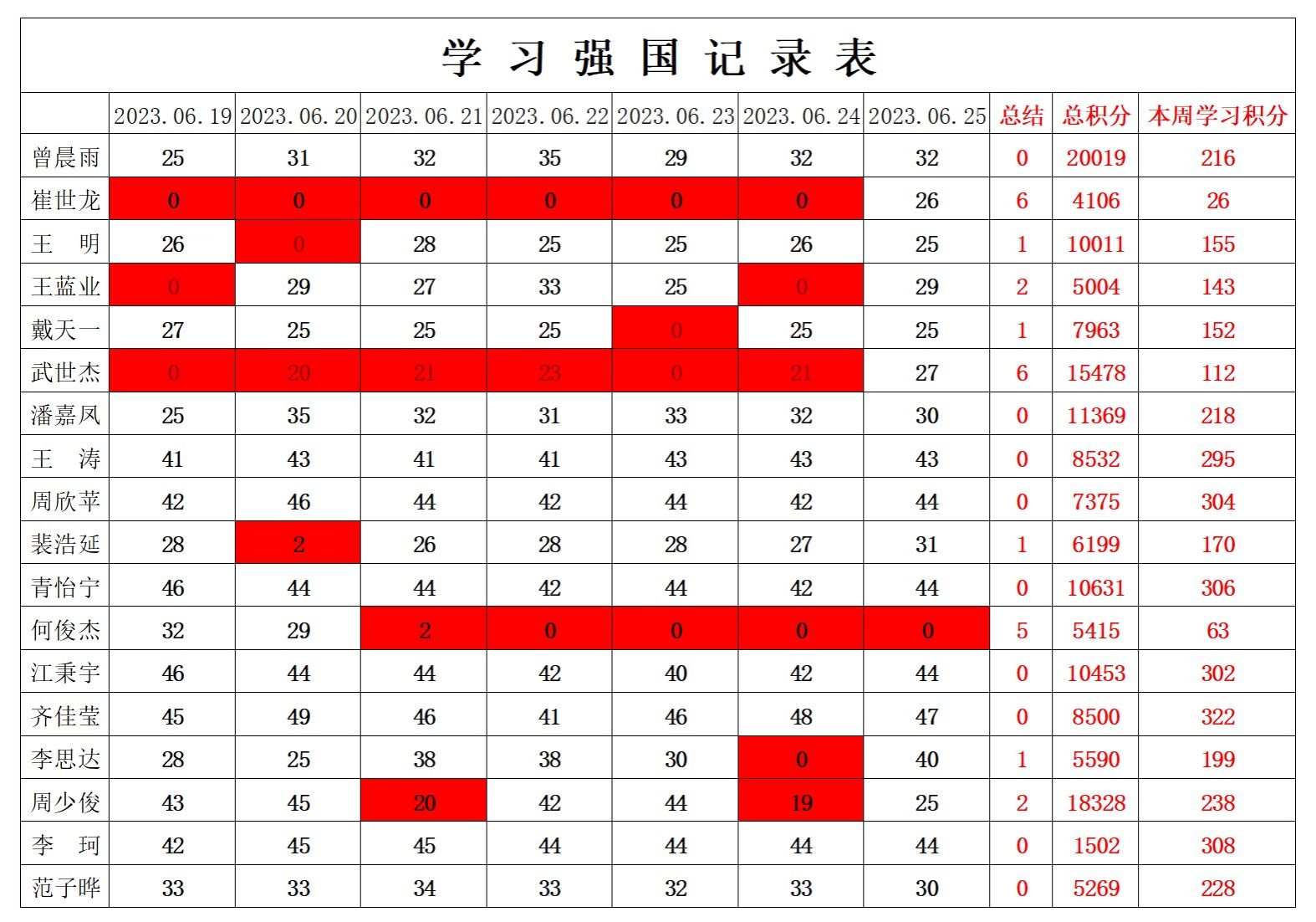 betway必威西汉姆联学生党支部2022-2023学年第二学期第十八周学习强国学习进度