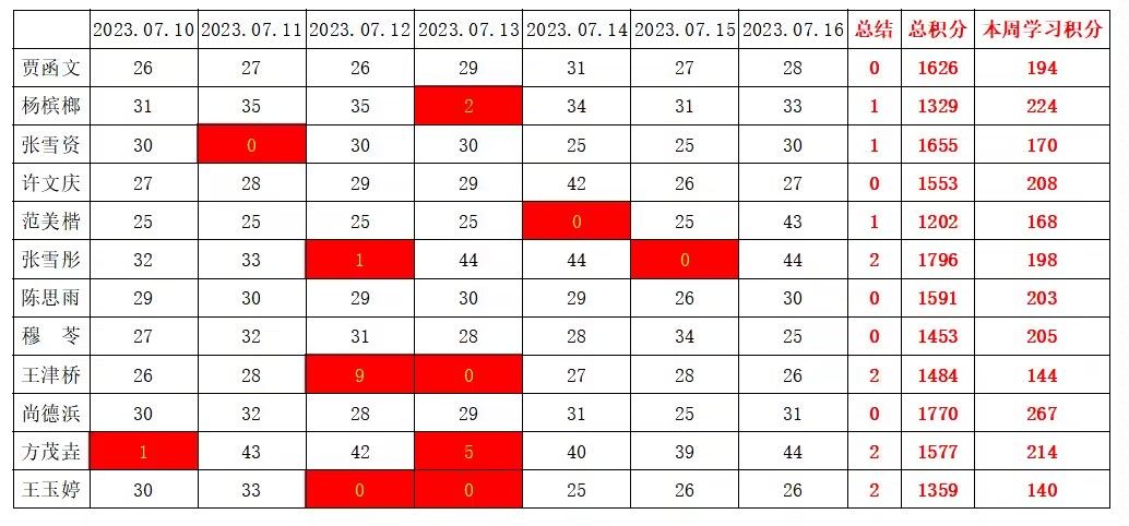 betway必威西汉姆联学生党支部2023年暑假第一周学习强国学习进度