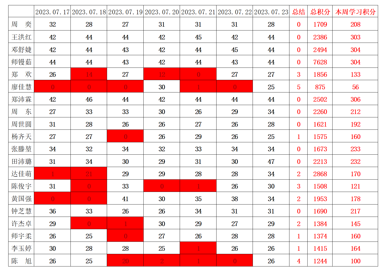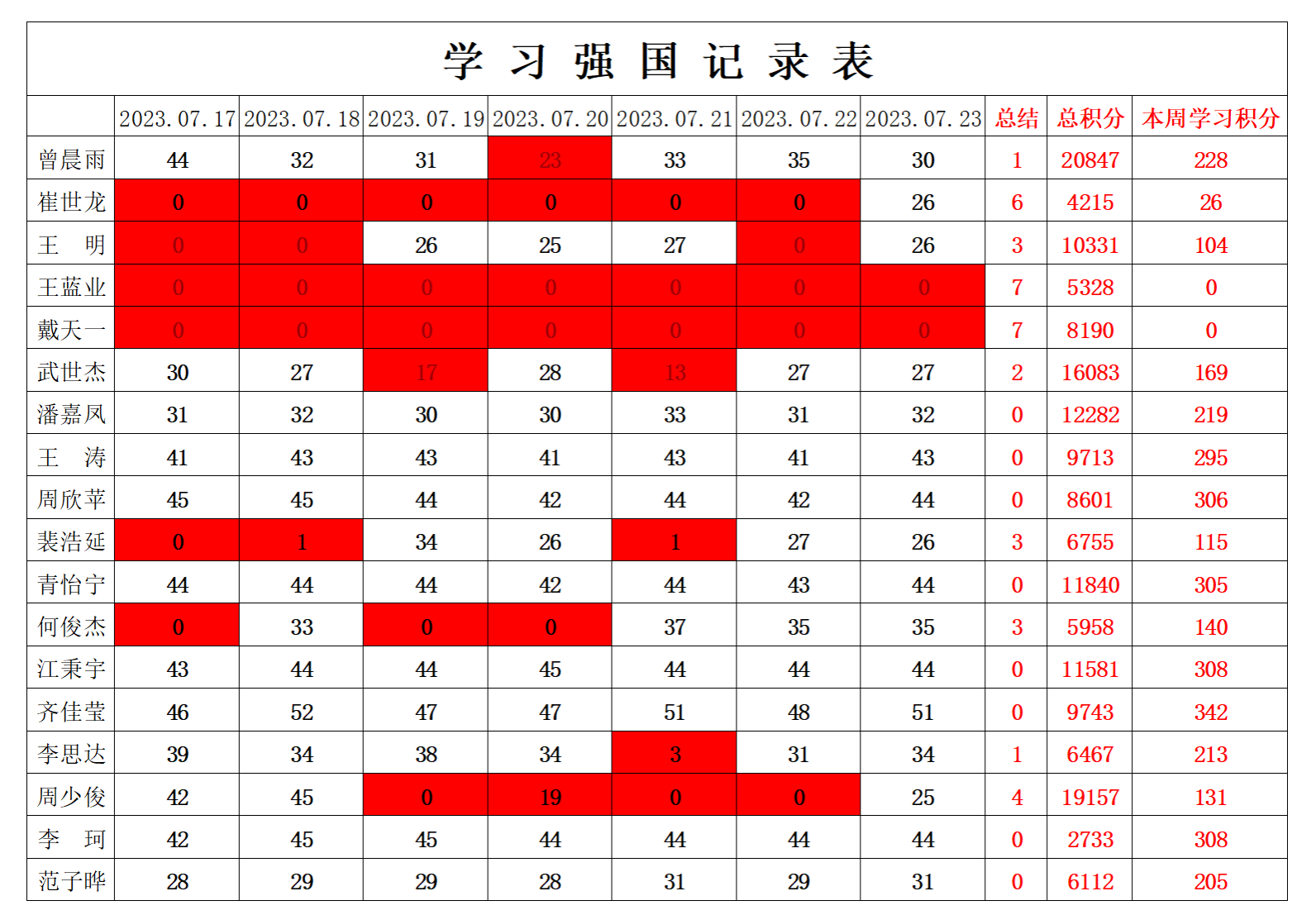betway必威西汉姆联学生党支部2023年暑假第二周学习强国学习进度