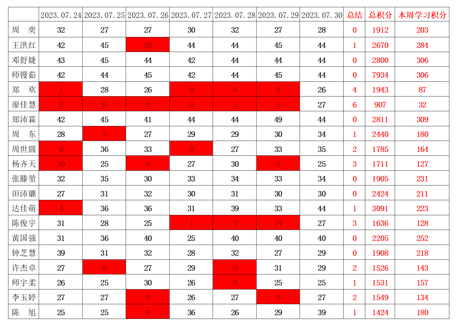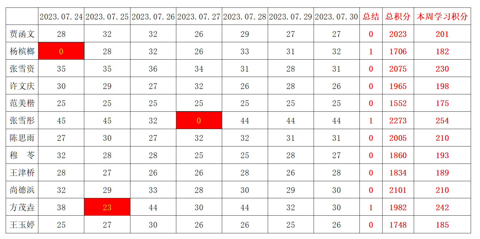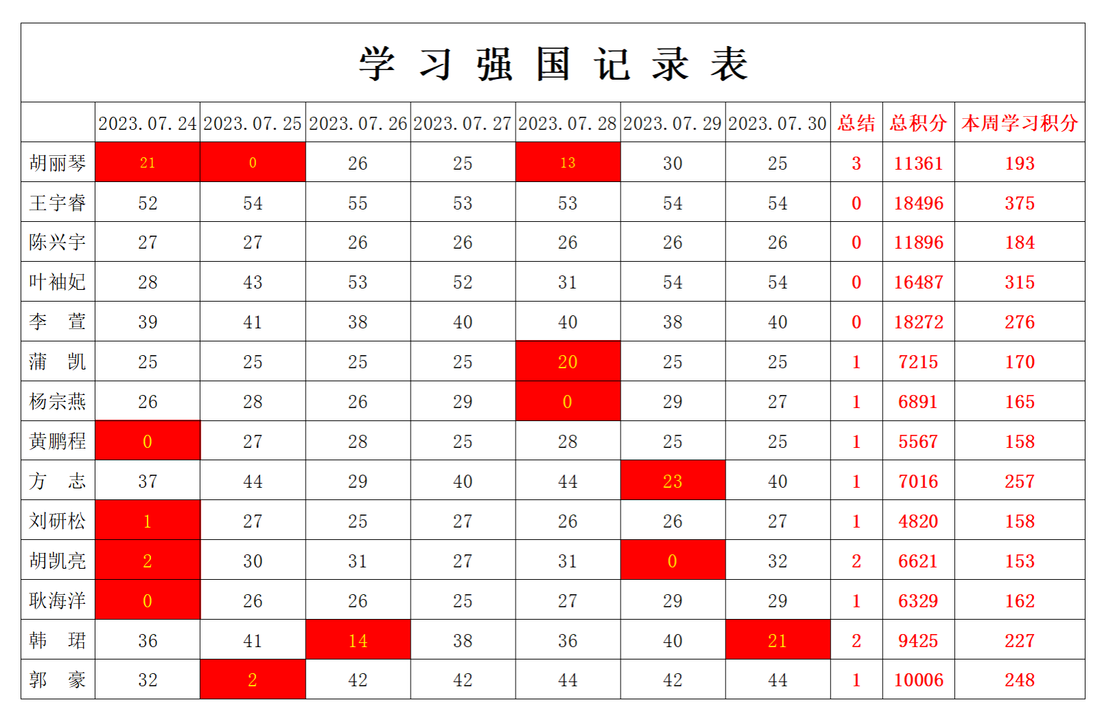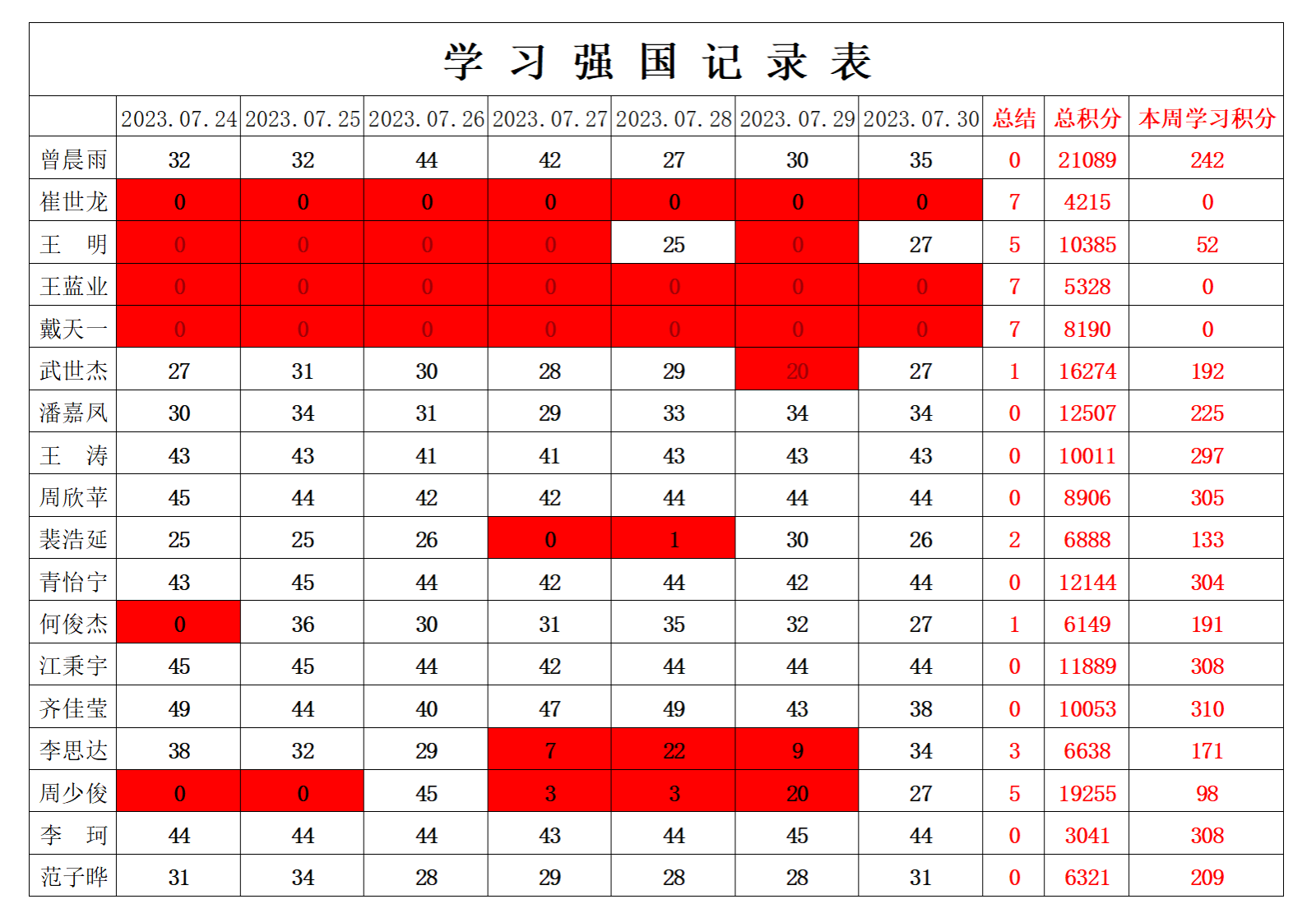 betway必威西汉姆联学生党支部2023年暑假第三周学习强国学习进度