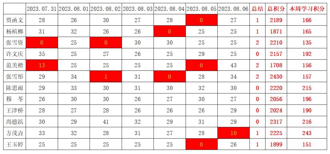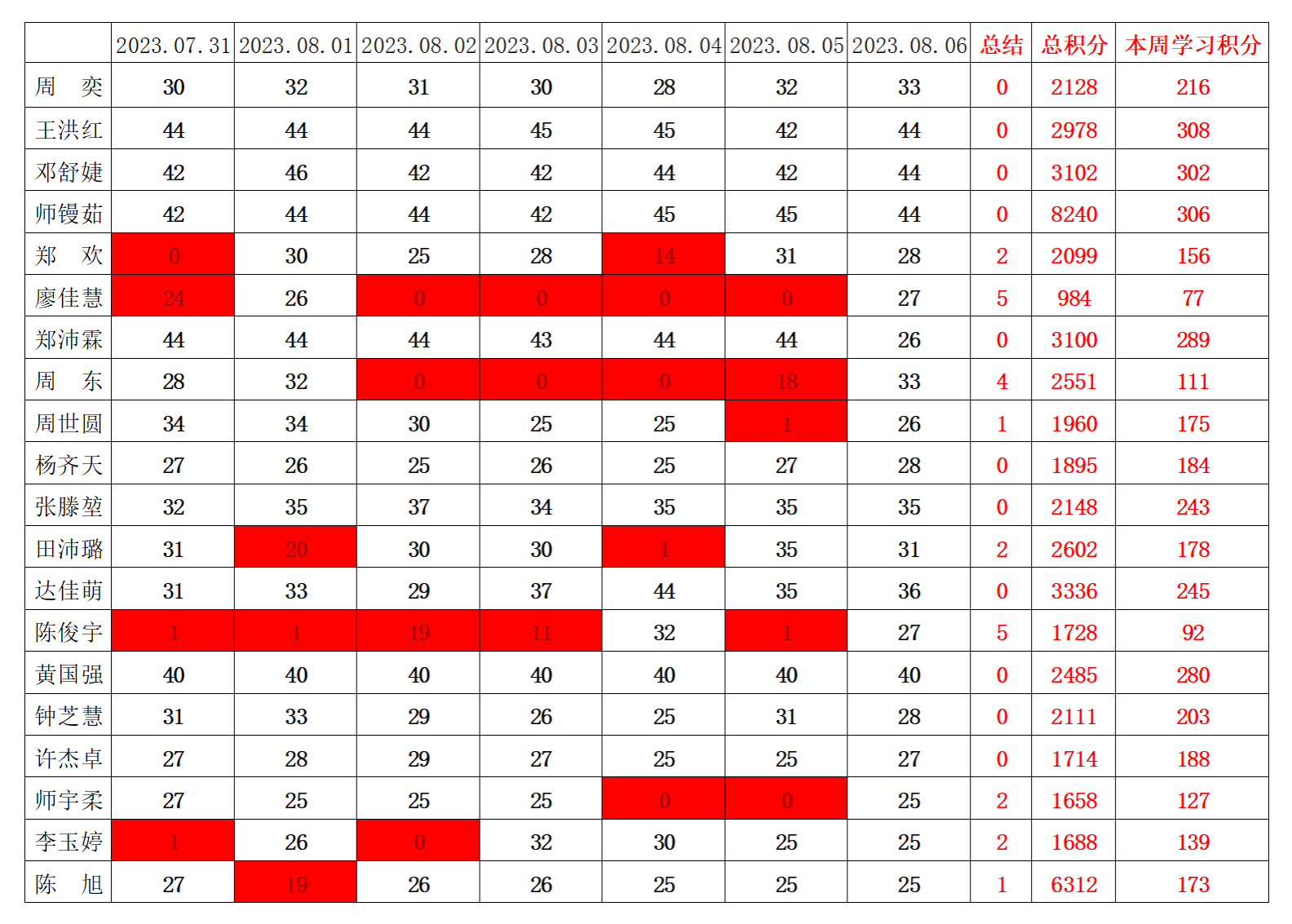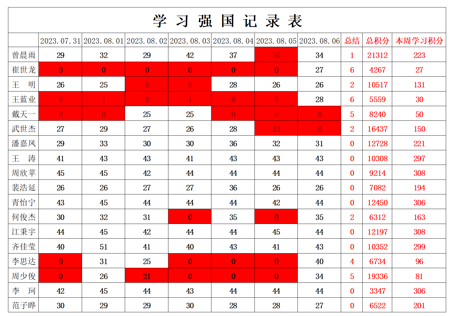 betway必威西汉姆联学生党支部2023年暑假第四周学习强国学习进度