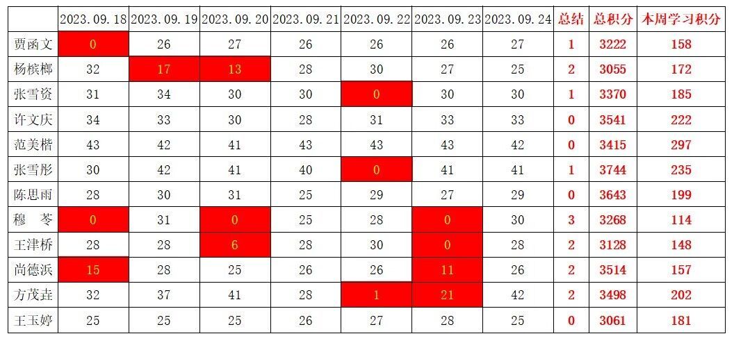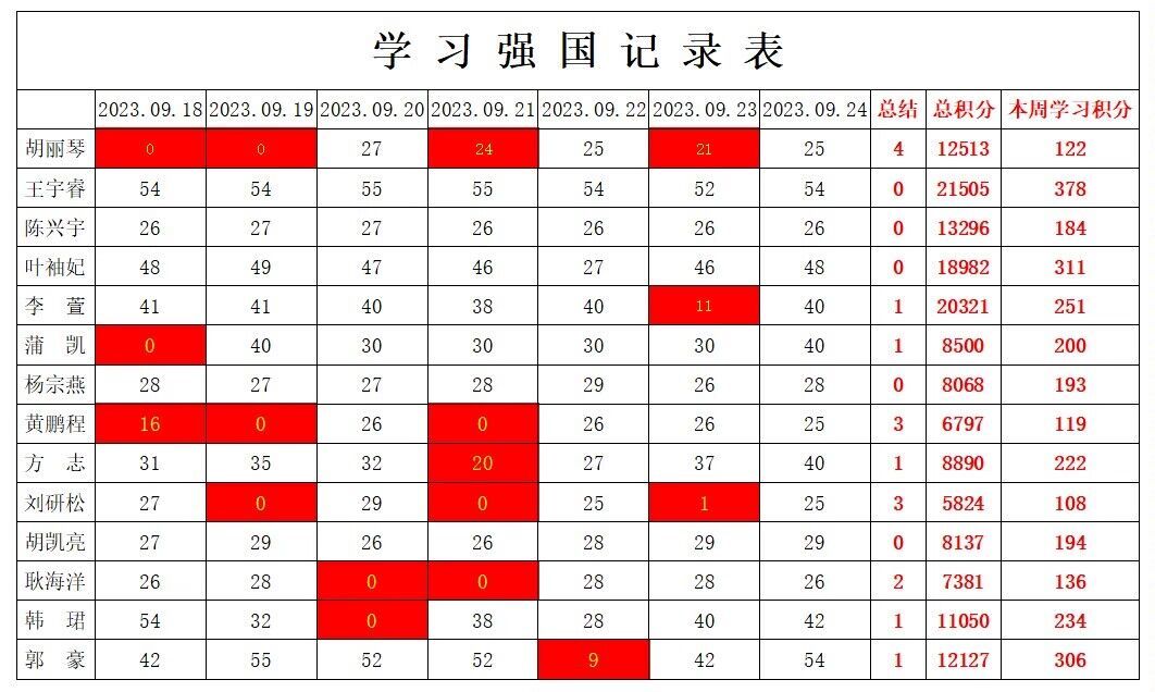 betway必威西汉姆联学生党支部2023-2024学年第一学期第三周学习强国学习进度