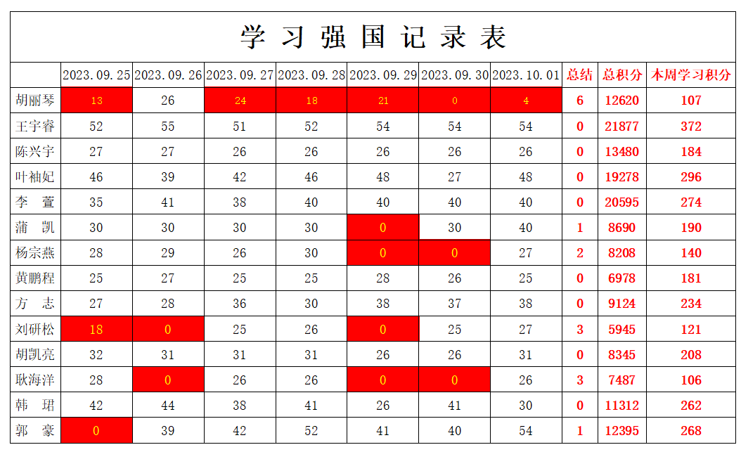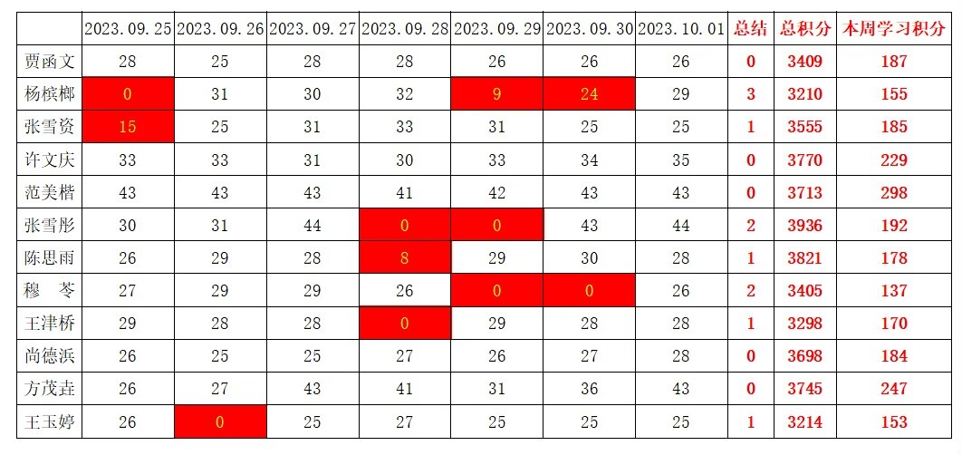 betway必威西汉姆联学生党支部2023-2024学年第一学期第四周学习强国学习进度