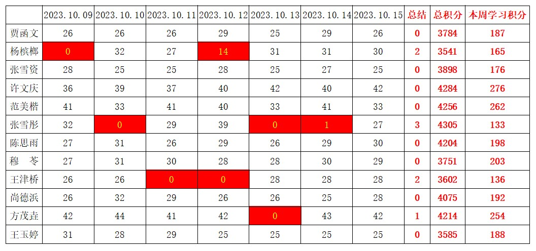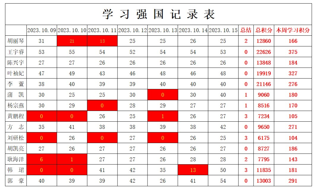betway必威西汉姆联学生党支部2023-2024学年第一学期第六周学习强国学习进度