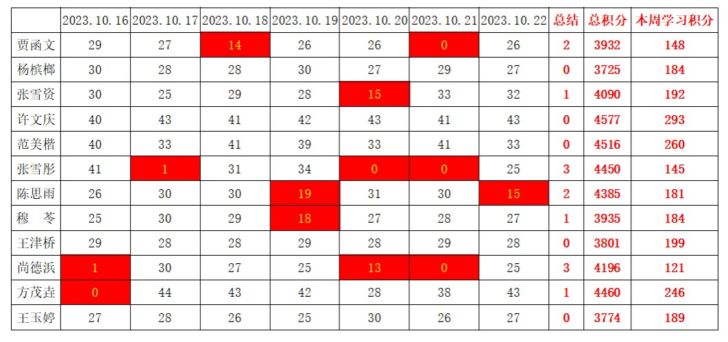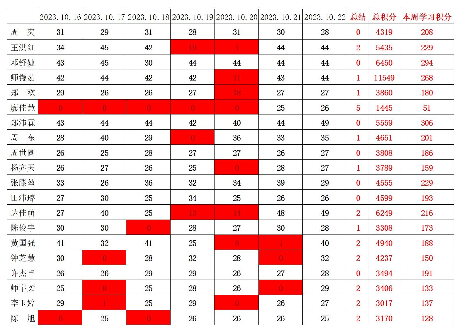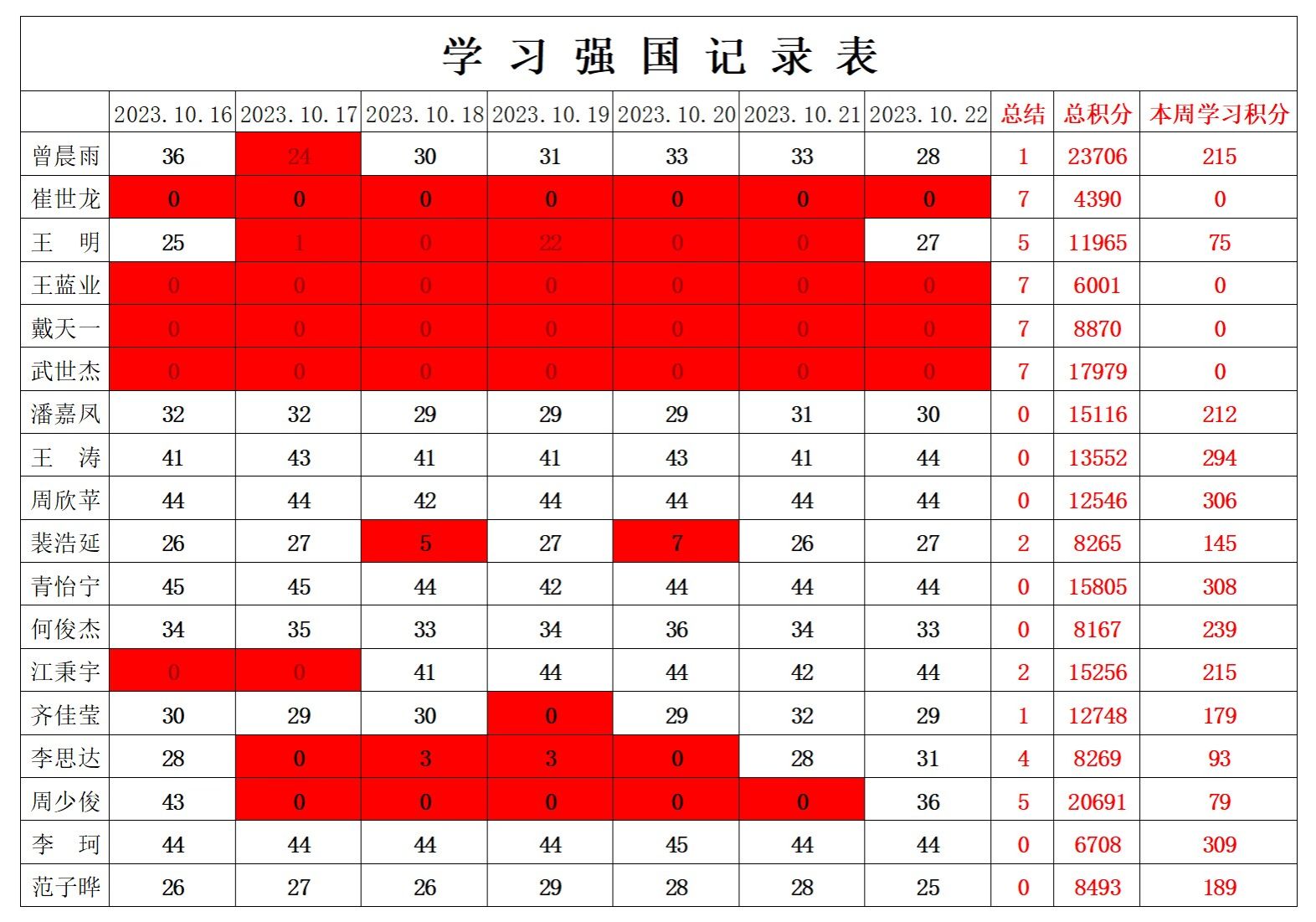 betway必威西汉姆联学生党支部2023-2024学年第一学期第七周学习强国学习进度