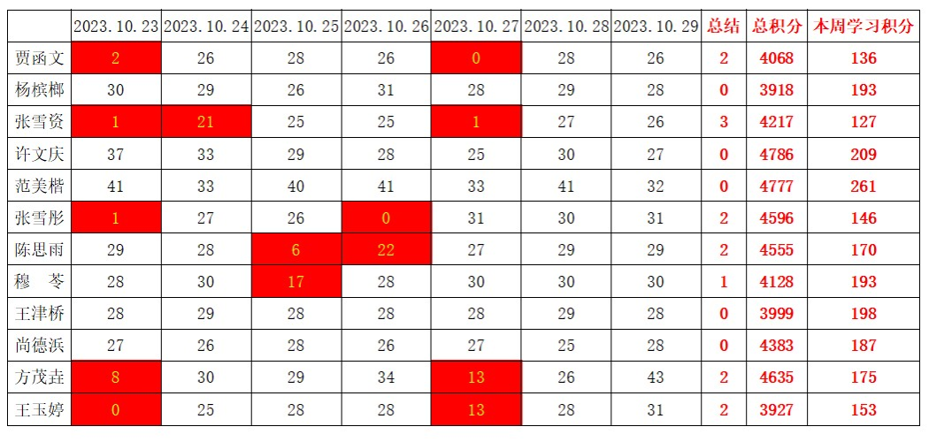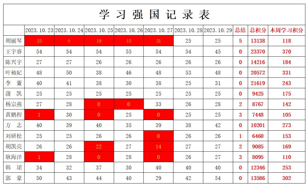 betway必威西汉姆联学生党支部2023-2024学年第一学期第八周学习强国学习进度
