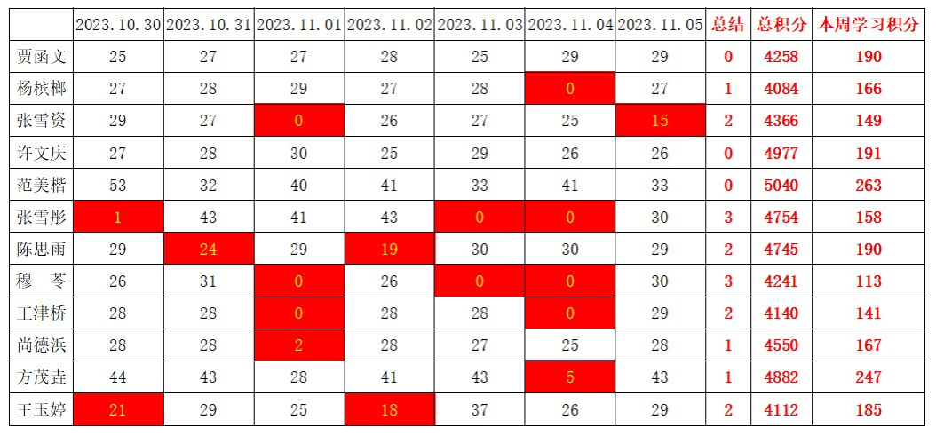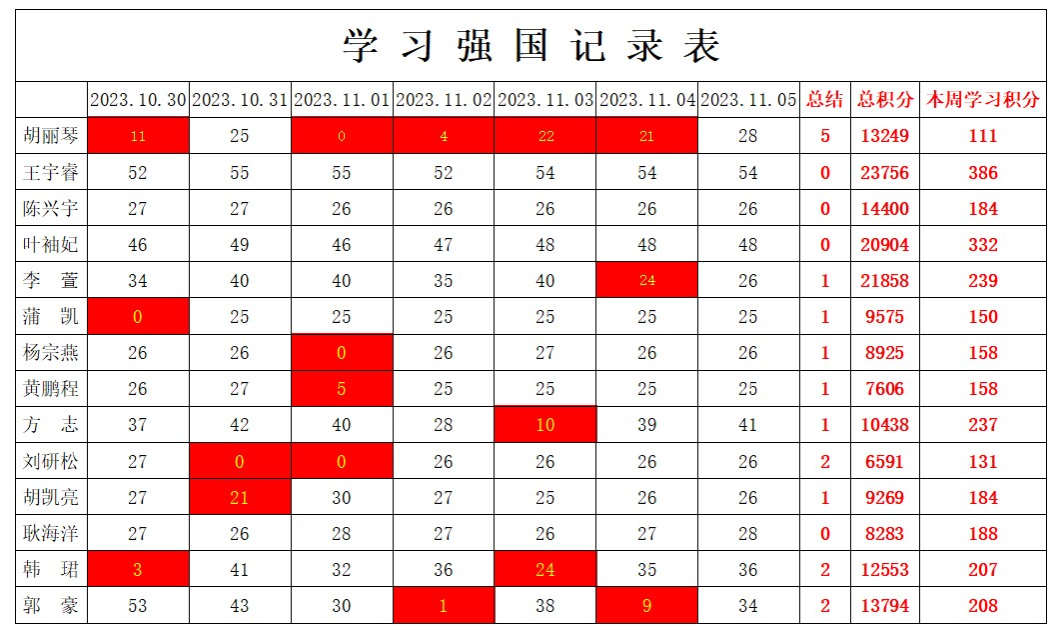 betway必威西汉姆联学生党支部2023-2024学年第一学期第九周学习强国学习进度