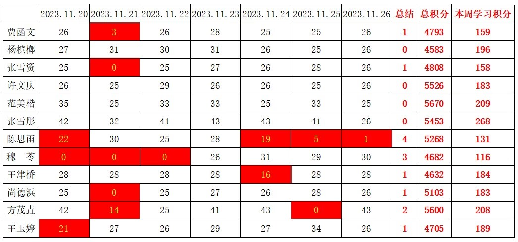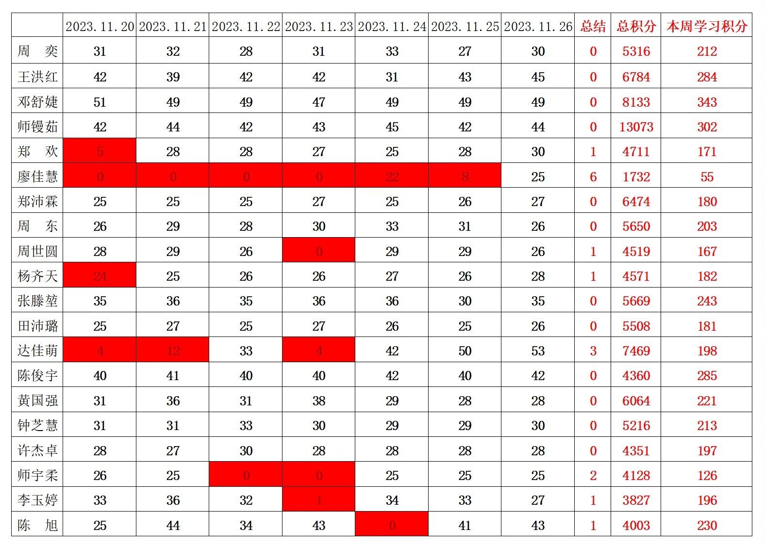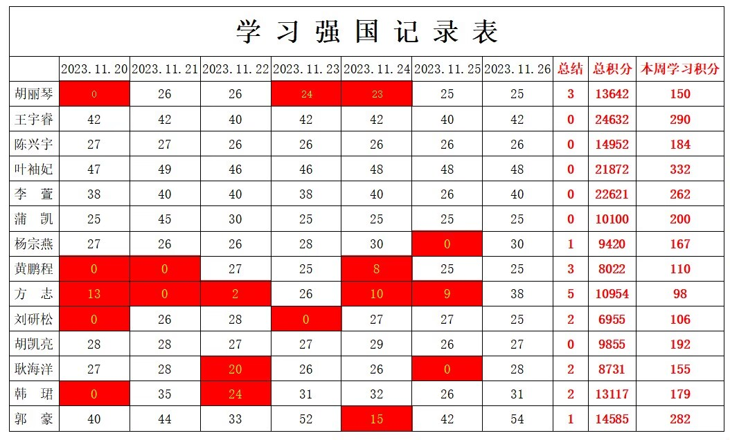 betway必威西汉姆联学生党支部2023-2024学年第一学期第十二周学习强国学习进度
