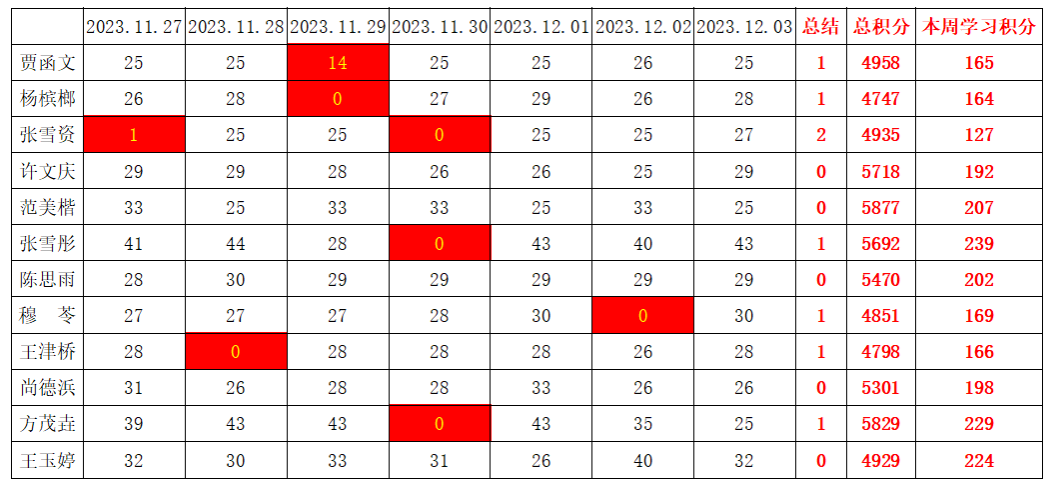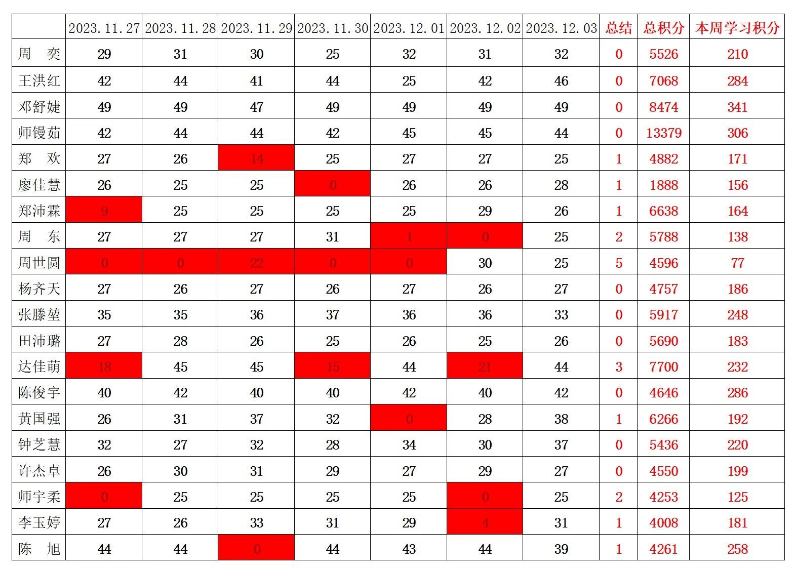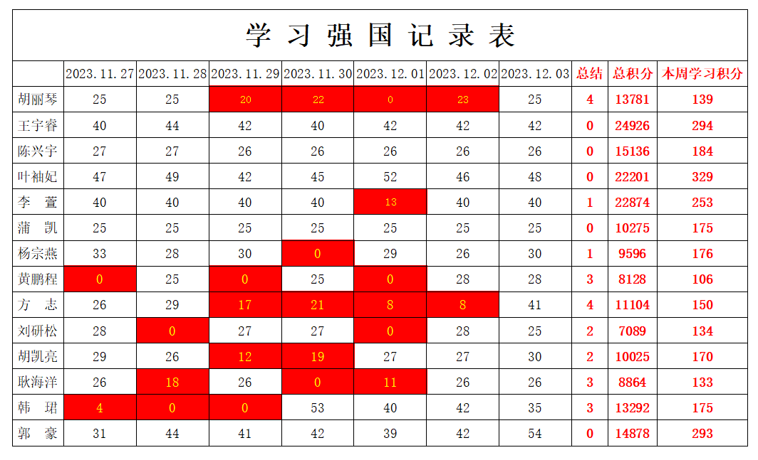 betway必威西汉姆联学生党支部2023-2024学年第一学期第十三周学习强国学习进度