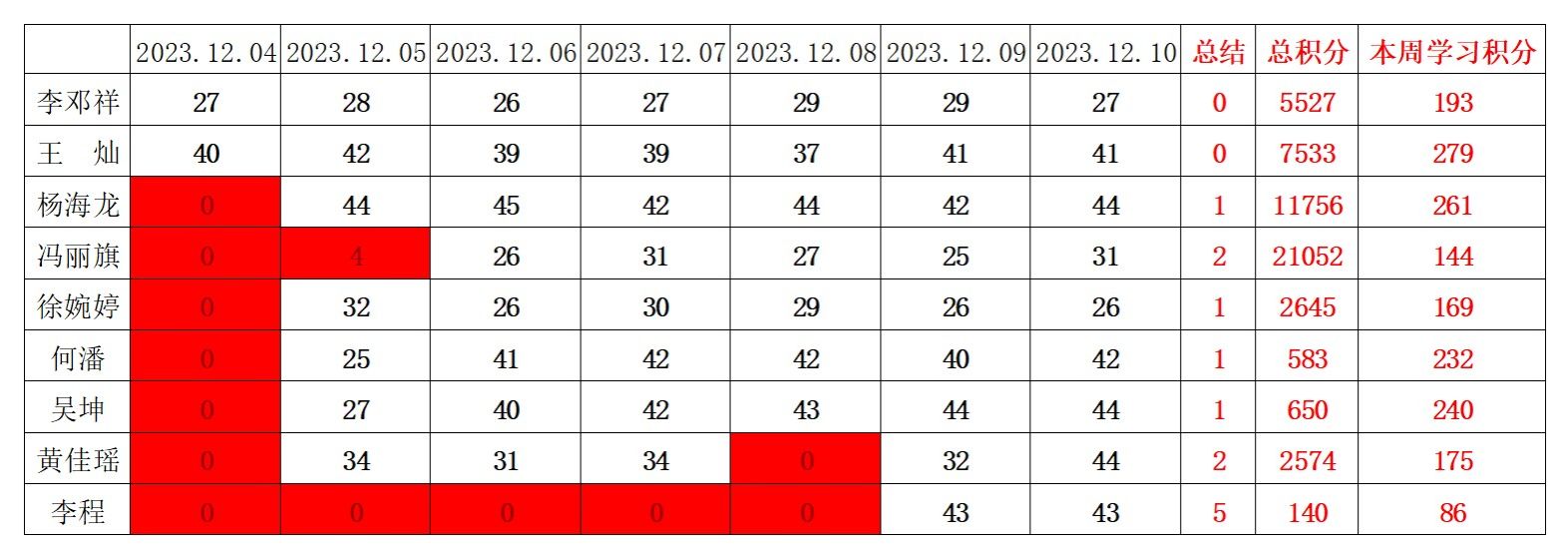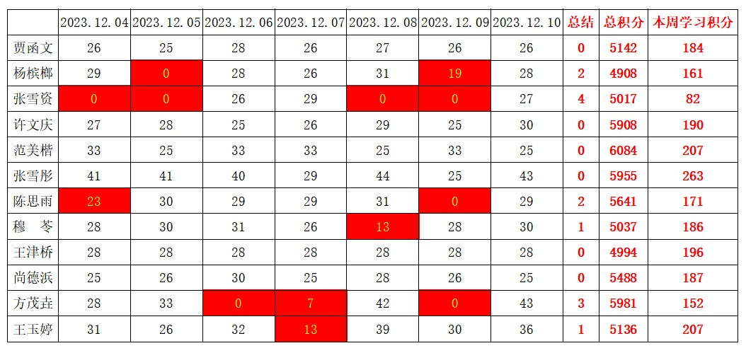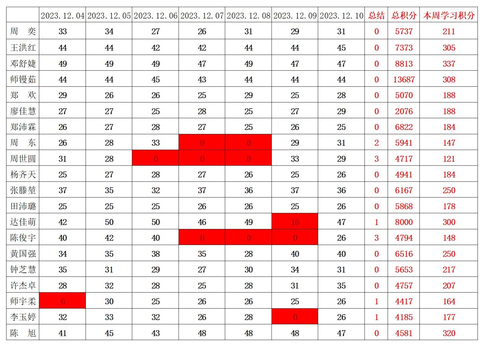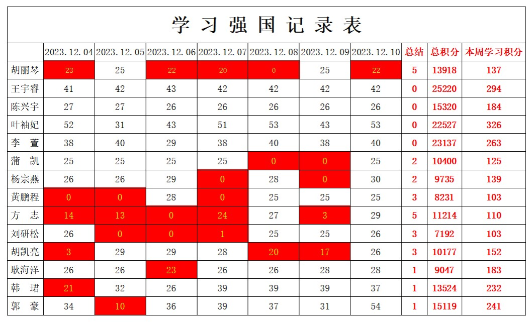 betway必威西汉姆联学生党支部2023-2024学年第一学期第十四周学习强国学习进度