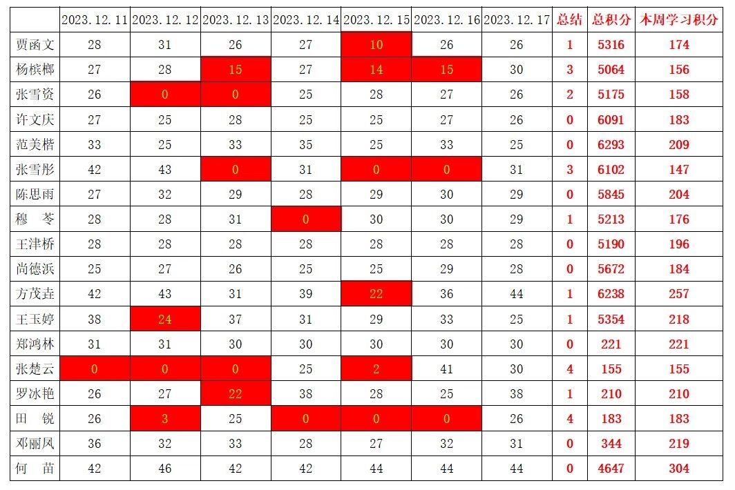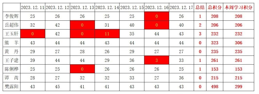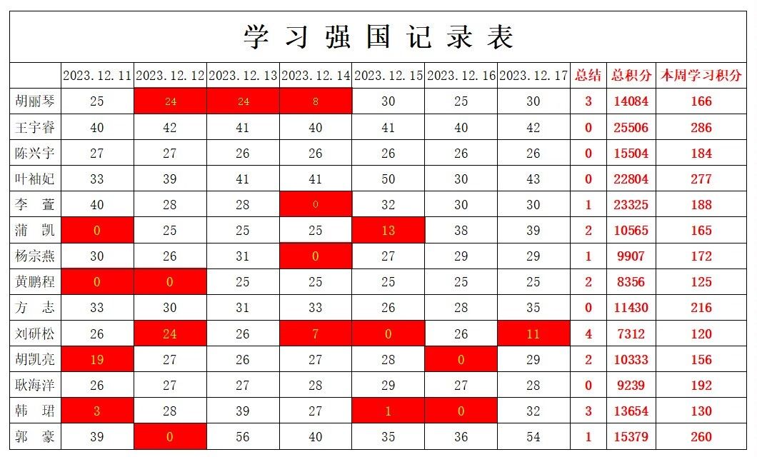 betway必威西汉姆联学生党支部2023-2024学年第一学期第十五周学习强国学习进度